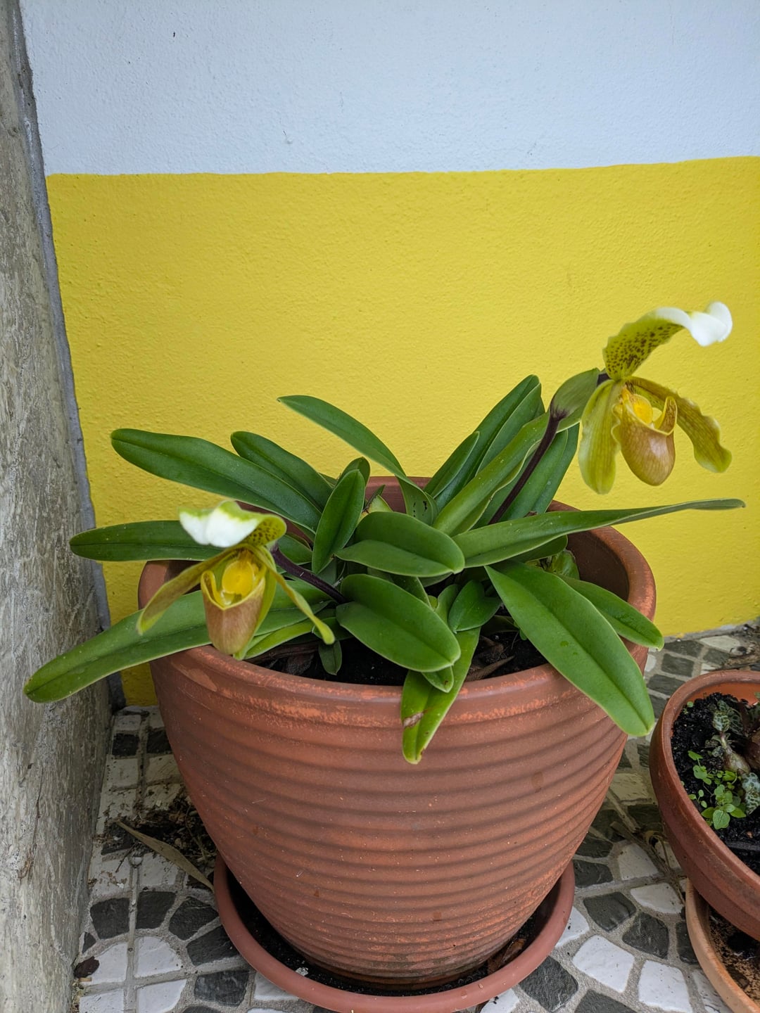 アスリッパ蘭がうちのパティオを明るくしてくれる
