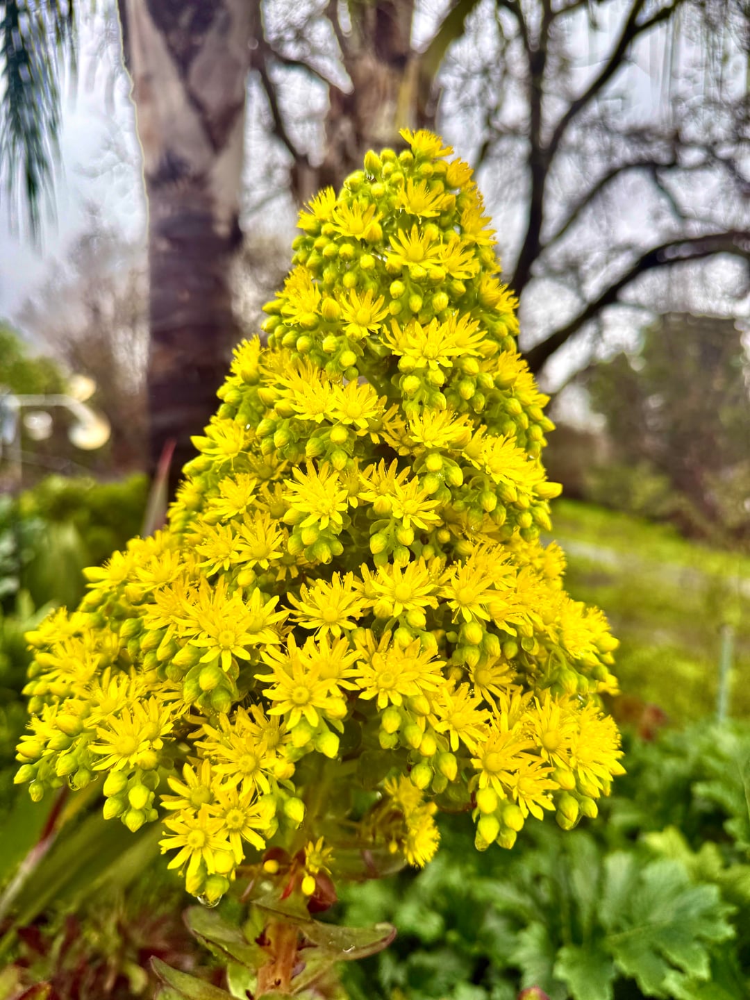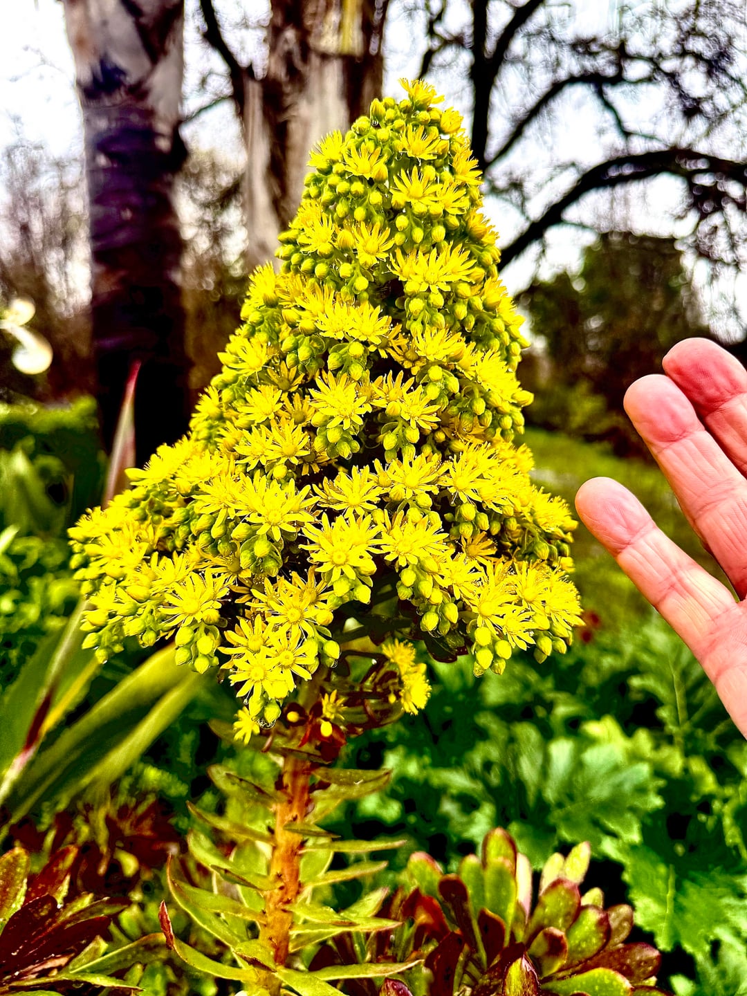 クリスマスツリーの形に咲くアエオニウムを愛してます (視点を手で)