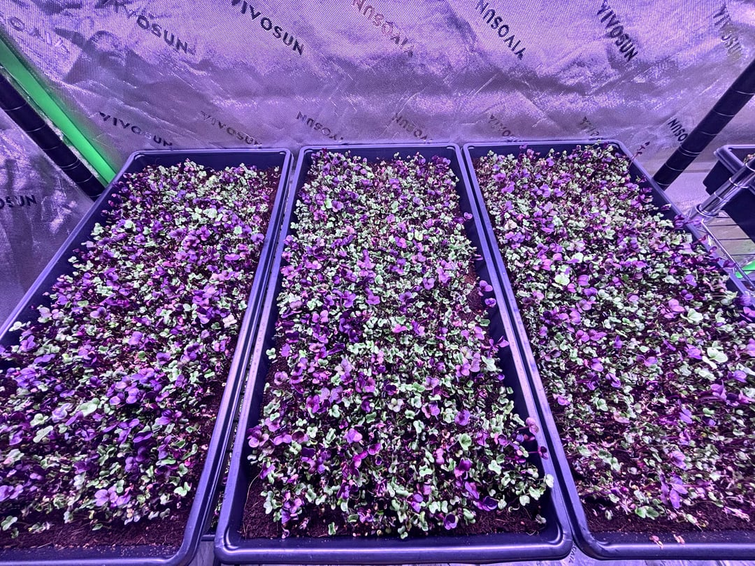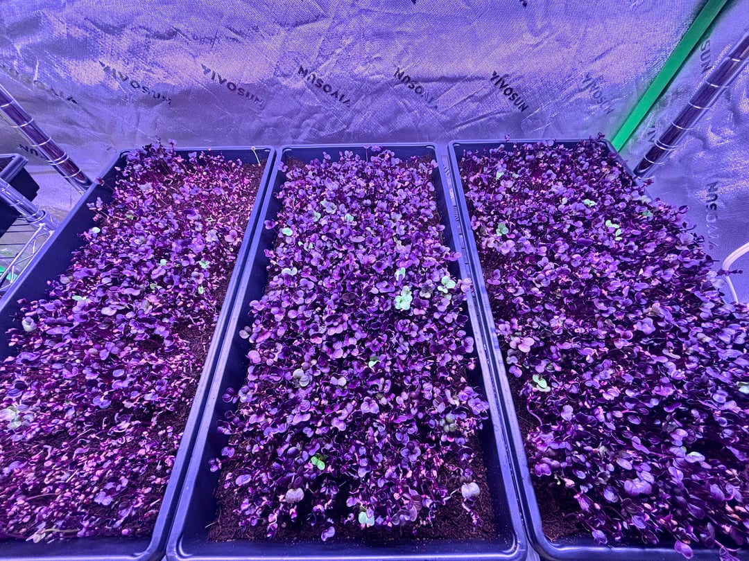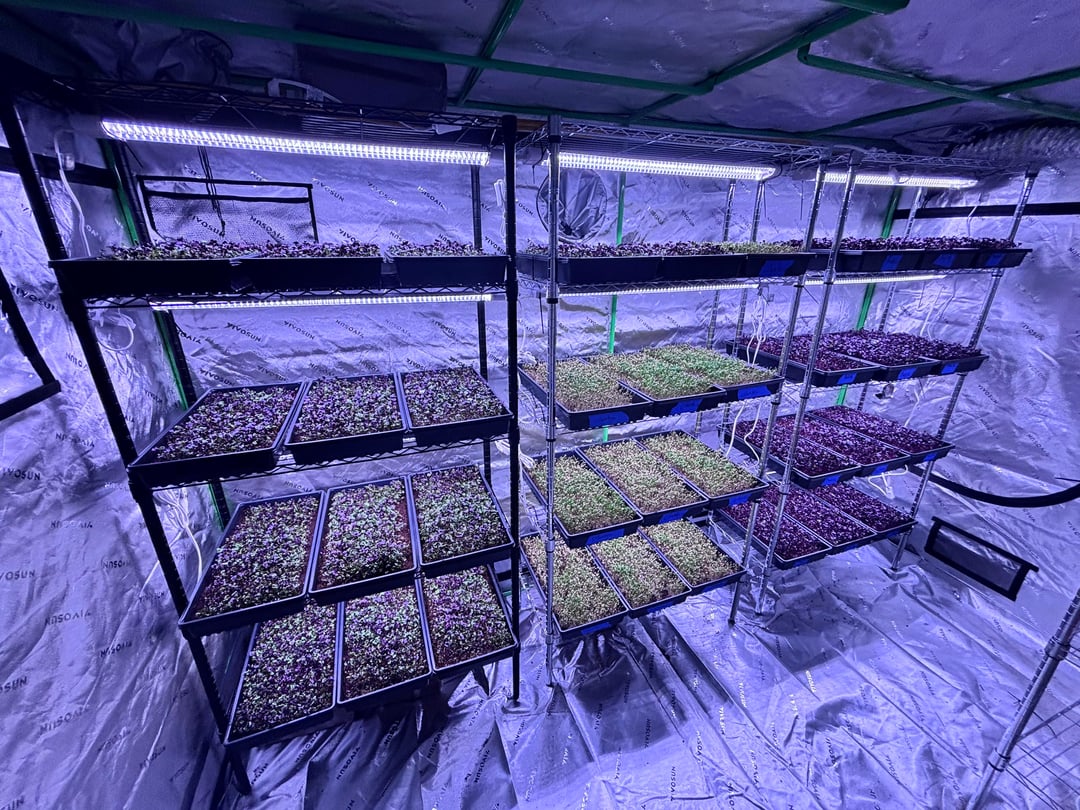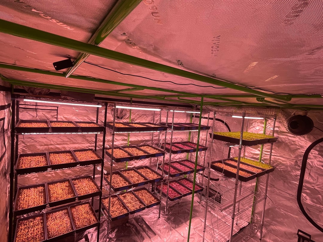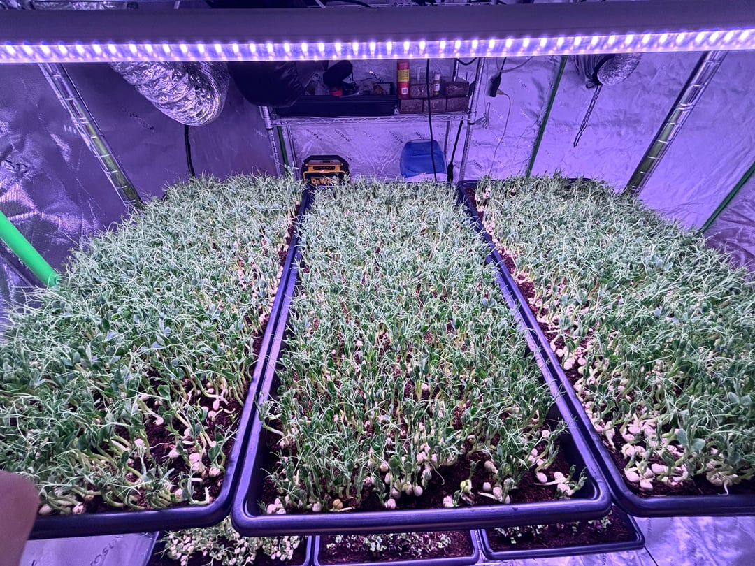これは非常に野心的だと言う人もいるかもしれませんが、私と私のパートナーは2026年2月11日にマイクログリーンビジネスを始め、2月22日の時点でこれが私たちの到達点です。これが私にとって初めてのマイクログリーン栽培です。屋内ガーデニングの経験はありますが、コリアンダー、エンドウ豆、大根、およびミックスを実行しています。最初の実行では42 1020トレイになります。温度は70°F〜75°F、湿度は70°F〜75°Fに保っています。 50〜55%は梱包と冷蔵保存の準備ができており、1〜2日以内に収穫できるはずです。サンプルをレストランや地元の店舗に持ち込む予定です。アドバイスや建設的な批判があれば大歓迎です。短期間でこれに多くのことを費やしました。