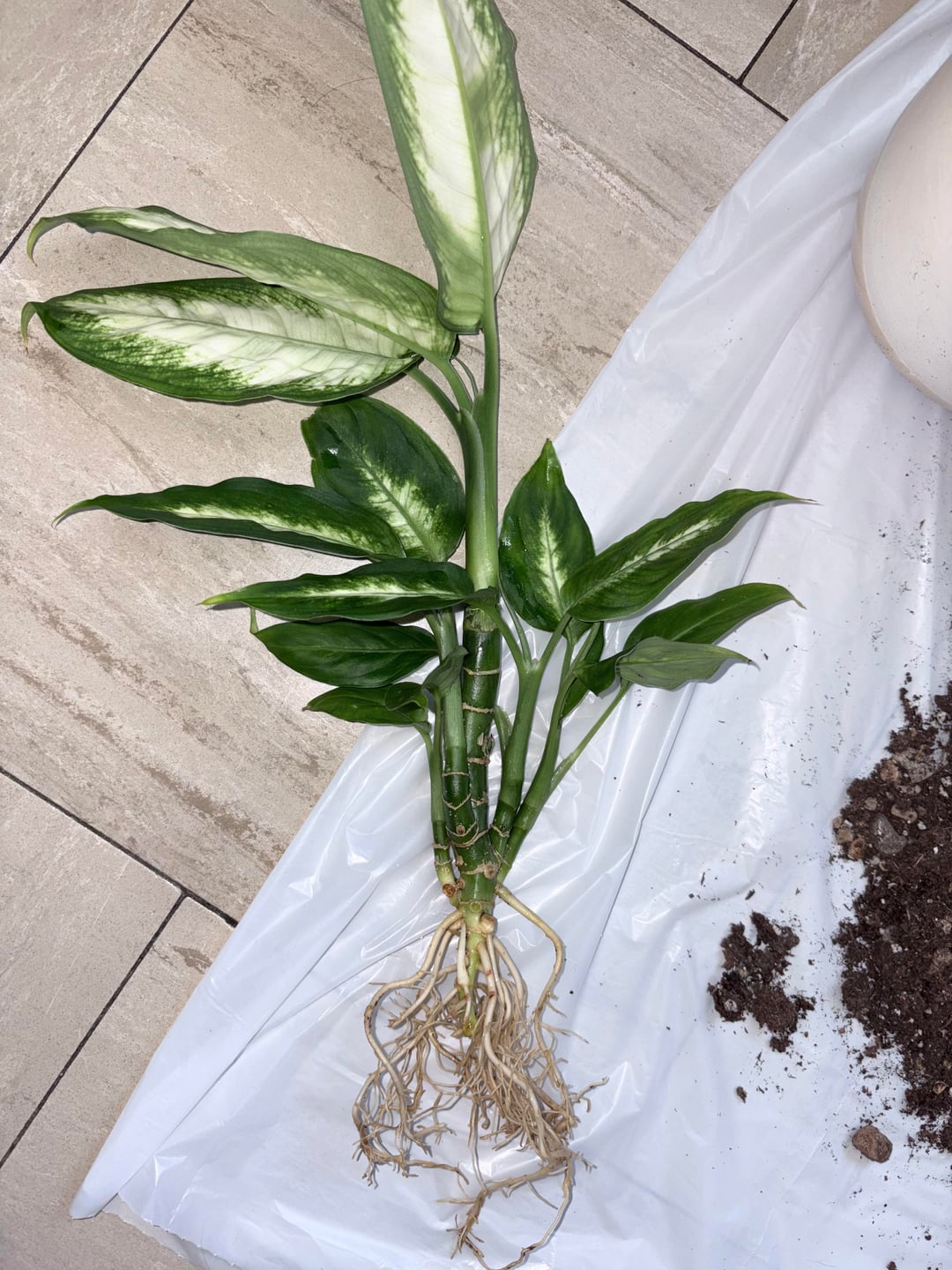 やあ、寮に住んで6ヶ月になりますが、先月までは植物に問題はありませんでした。ディフェンバキアの葉の先が黄色くなり始め、半分以上黄色になったところで切り取ったのですが、それだけでは終わりませんでした。一度に1枚ずつ葉が枯れ始め、今週末には大量の葉が枯れてしまいました。どうすればいいのかわかりません!週に一度水やりをし、新しい土を与えて根の状態をチェックし、肥料も与えました!今週末、酸素が足りていないのではないかと思い、土の中に箸を入れてみましたが、効果はありませんでした。葉は以前は硬かったのに、ふわふわして紙のように感じられます。