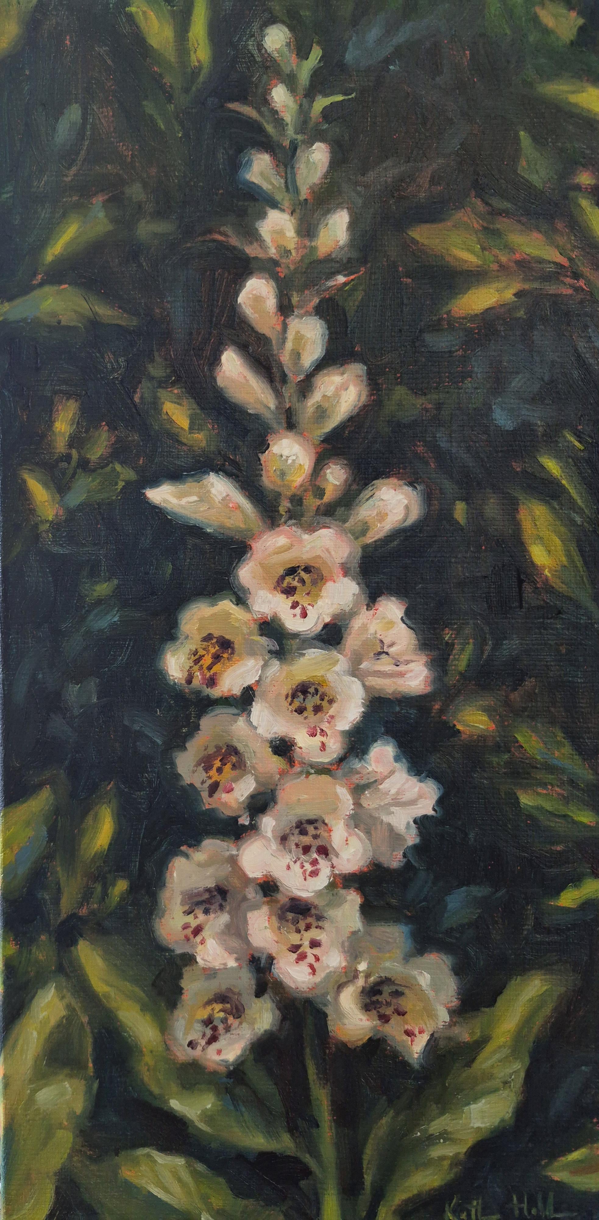 私の新しい白いジギタリスの油絵 6×12 インチ