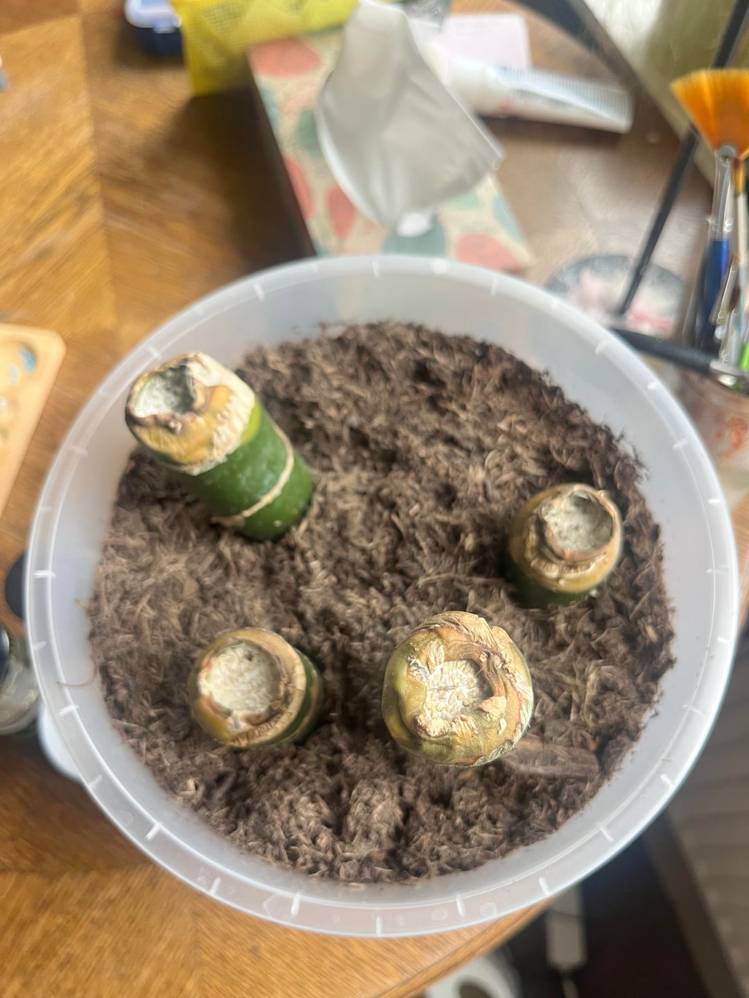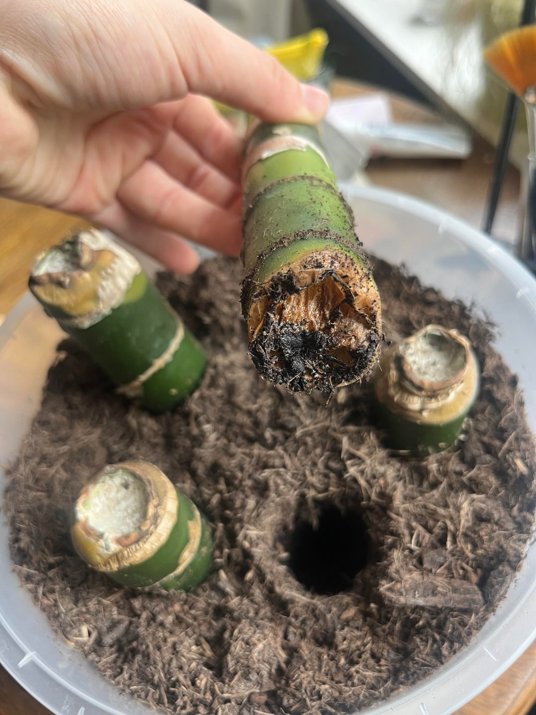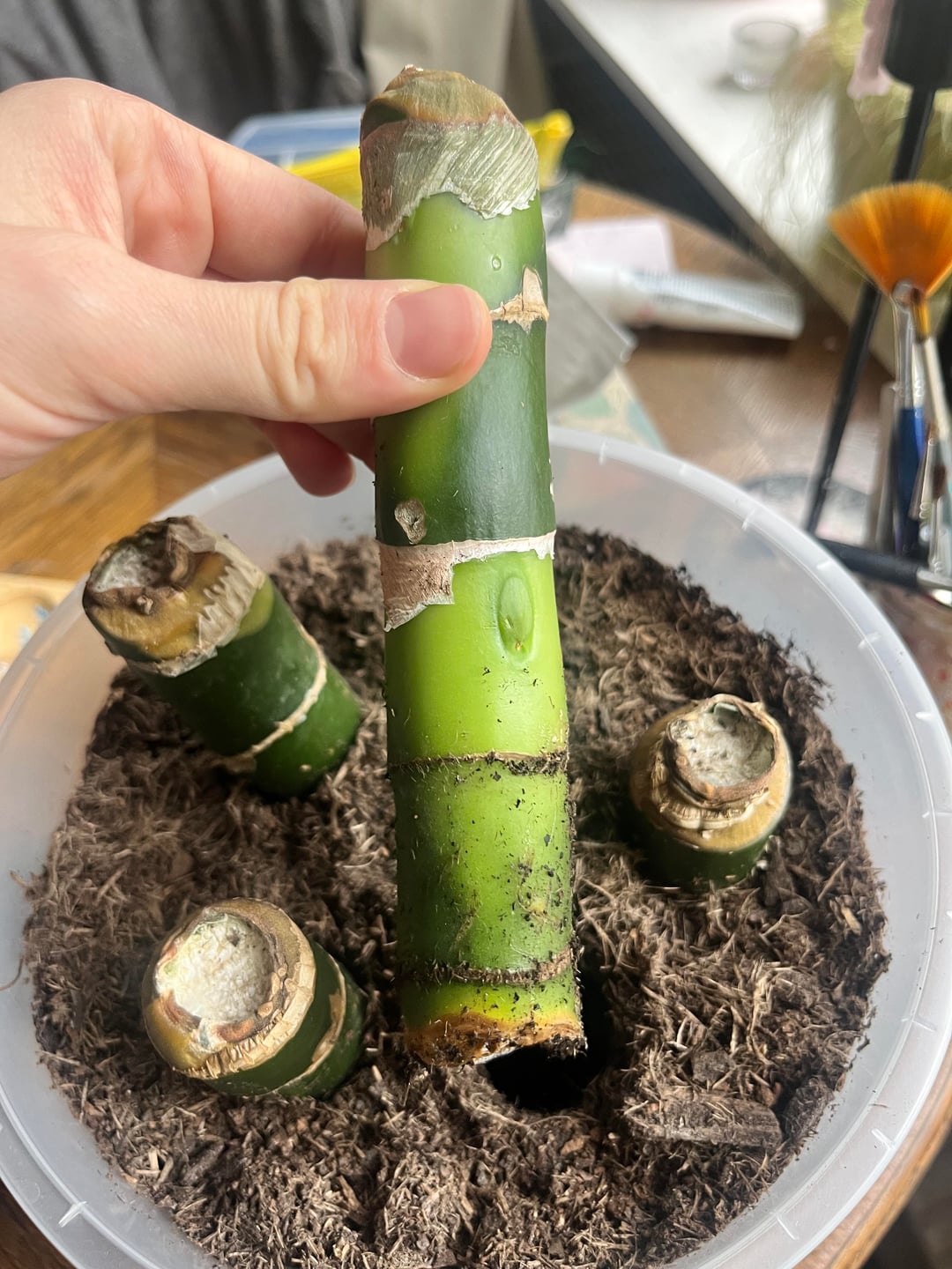 こんにちは、 私のお気に入りのディフェンバキアを繁殖させようとするのはこれが初めてではありません(そして、壊れてしまったので、作成中の彼女を保存します)。 これまでのところ、私は完全に失敗しています。 Reddit と YouTube でアドバイスを見たように、土に直接刺した破片の写真をここに投稿します。 それなら来てください