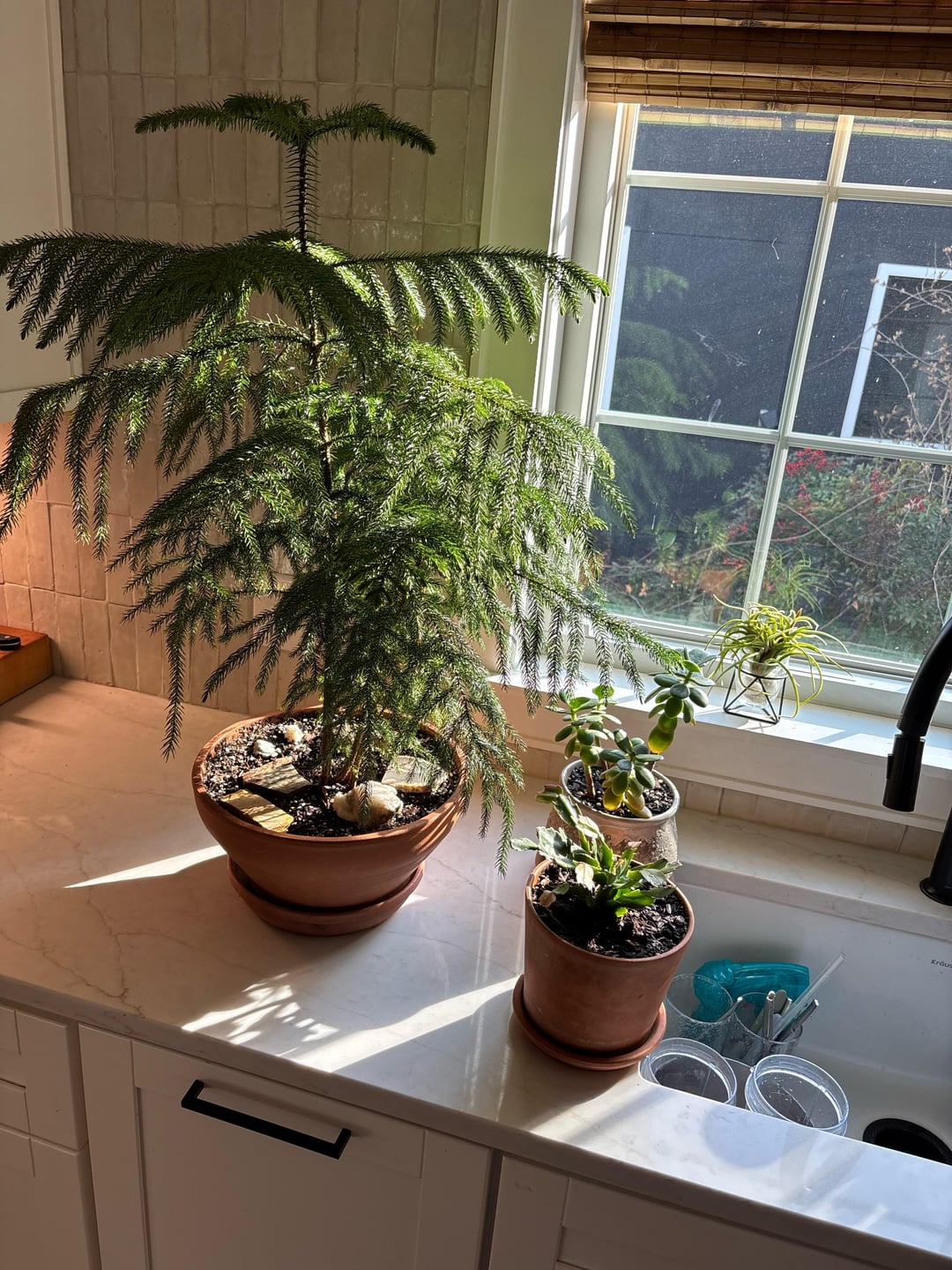私のノーフォーク(またはクック?)松(感謝祭のサボテン、翡翠の植物、ティラジアのボーナスショット付き)。