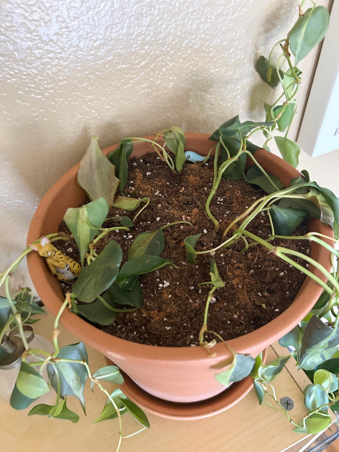 このポトスを3年間飼っていましたが、約1.5か月前にブヨが発生しました。私はすべてのスレッドと記事を読み、根からできるだけ多くの土を洗い流した後、新しい土で新しい鉢に植え替えることにしました。推奨通りにシナモンをふりかけ、植え替えの翌日に水やりをしました。 1週間が経ちましたが、彼女は立ち直っていません。冬にこれをやったのはタイミングが悪いとは思いますが、季節外れの暖かさだったので、ストレスが軽減されることを期待しました。それで、彼女は立ち直ることがあるのでしょうか、それとも私は彼女を堆肥の墓に送るのでしょうか? (私はこの植物から水の中で繁栄している小さな挿し木をいくつか持っています)