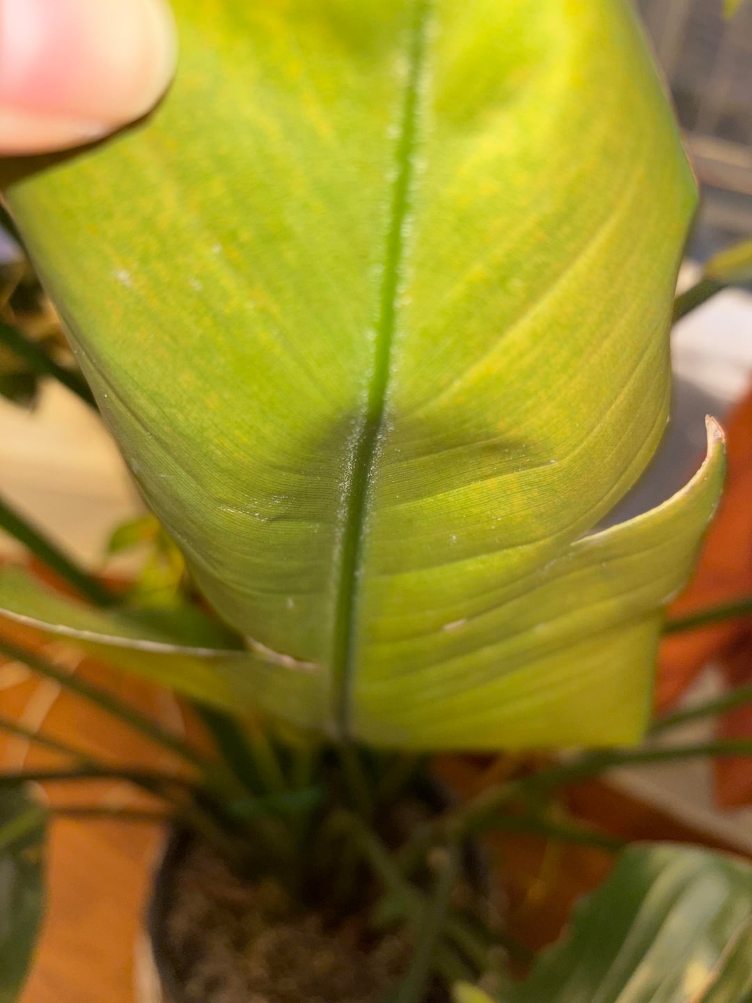 *写真を追加して再投稿* 今日、極楽鳥をより健康にする方法を調べているときにスケールについて学び、今では私の極楽鳥が寄生しているのではないかと疑念を抱いています。考えは?小さな白い点は指で簡単に取り除くことができます (爪は必要ありません)。ベタつきやベタつきがなく、まるでホコリを拭き取っているかのような使い心地 より健康にする方法についての他の考えも歓迎します。今日は竹竿を使って直立させて回転させたので、成長が均一になることを願っています