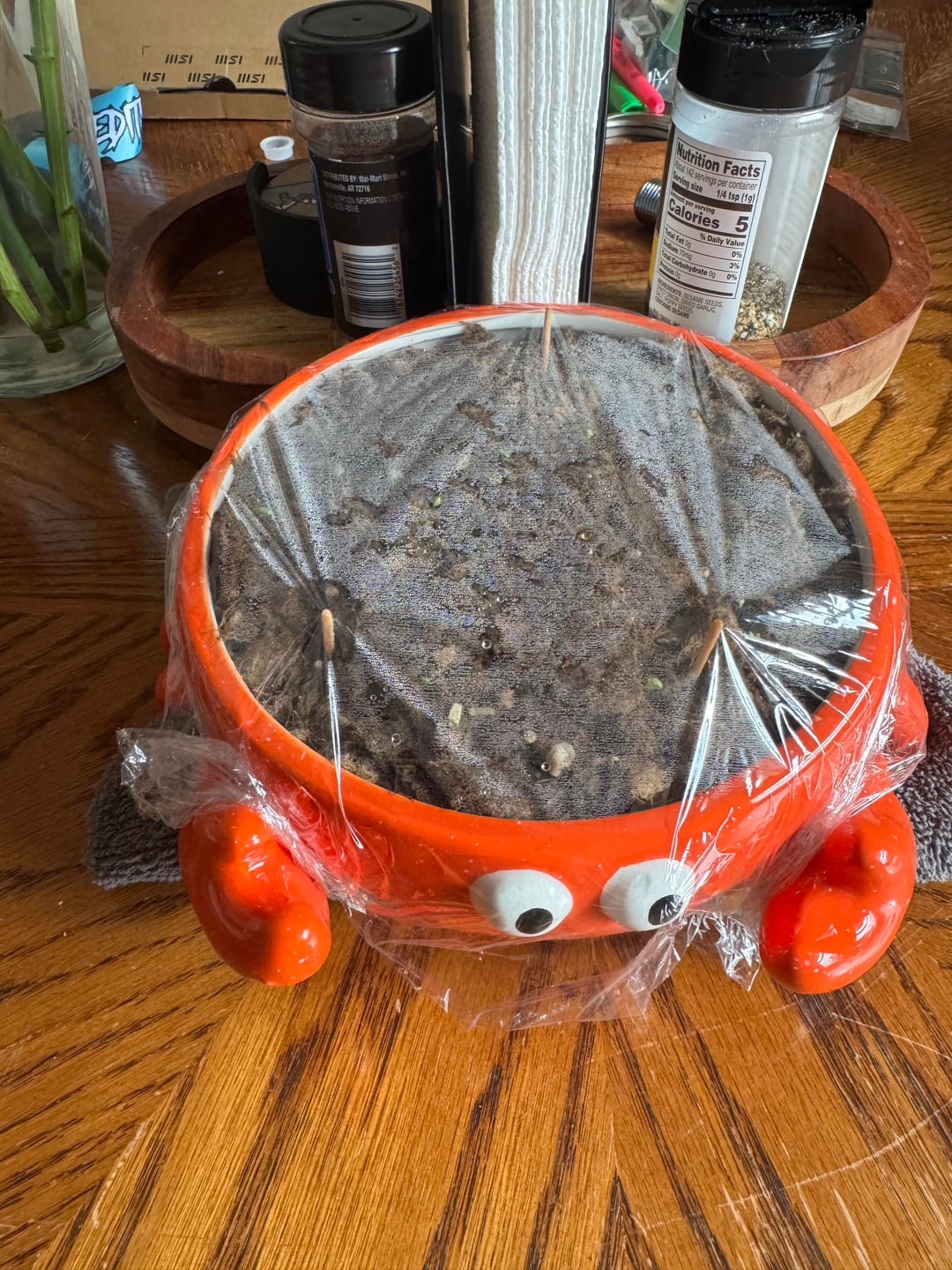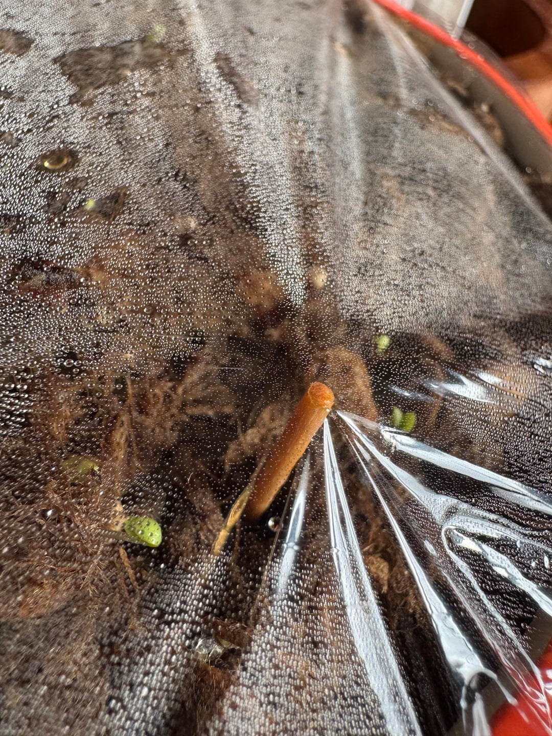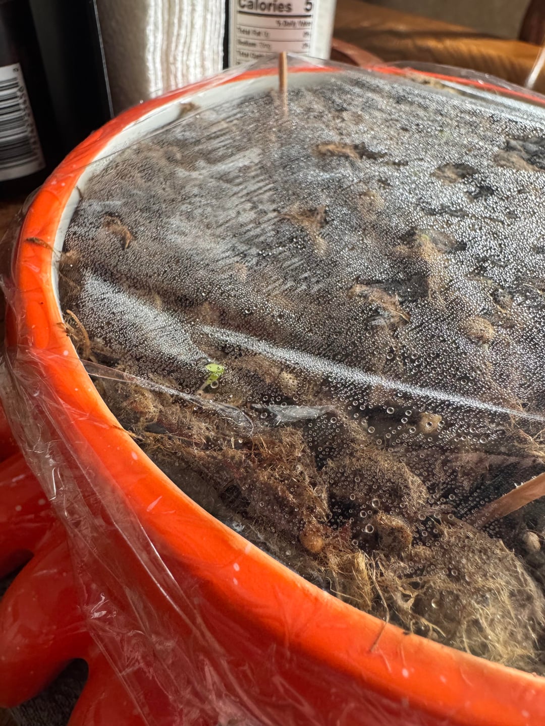 フラワーミックスを始めているのですが、いつになったら上からプラスチックのラップを取り除けるのか気になります。今日か昨日、種が芽を出し始めたところです。