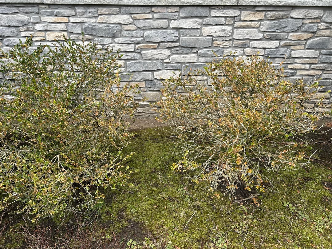 私の家の北側にこれらの茂みがあります。何年にもわたってゆっくりとGが減少しており、見た目はかなり悪くなります。それらが何の種であるかはわかりません。隣にヒイラギの茂みがあり、元気に育っているので、土壌は大丈夫だと思います。何が起こっているのかについて何かアイデアはありますか? 5個持っていますが、全部こんな感じです。