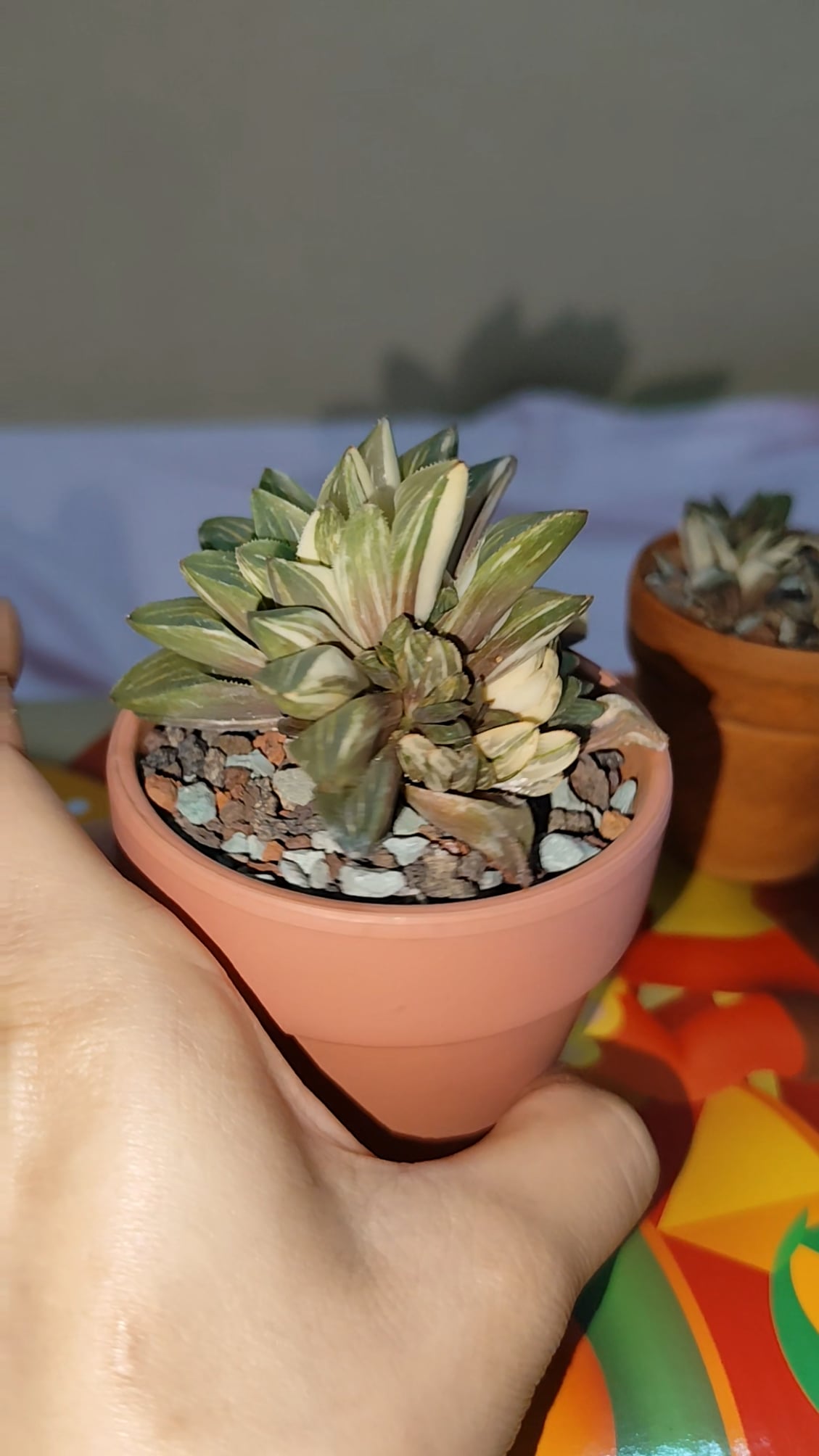 2026年2月7日に購入しましたが、母株を鉢植えにすることができたので、いくつかの子株を分割する必要がありました(笑)。植物の赤みがかった黒みは、日光にさらされた色です。そうですね、10ワットのグローライトを使用した場合でも、簡単に日光にさらされます。
