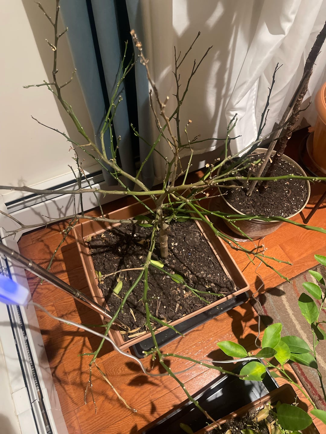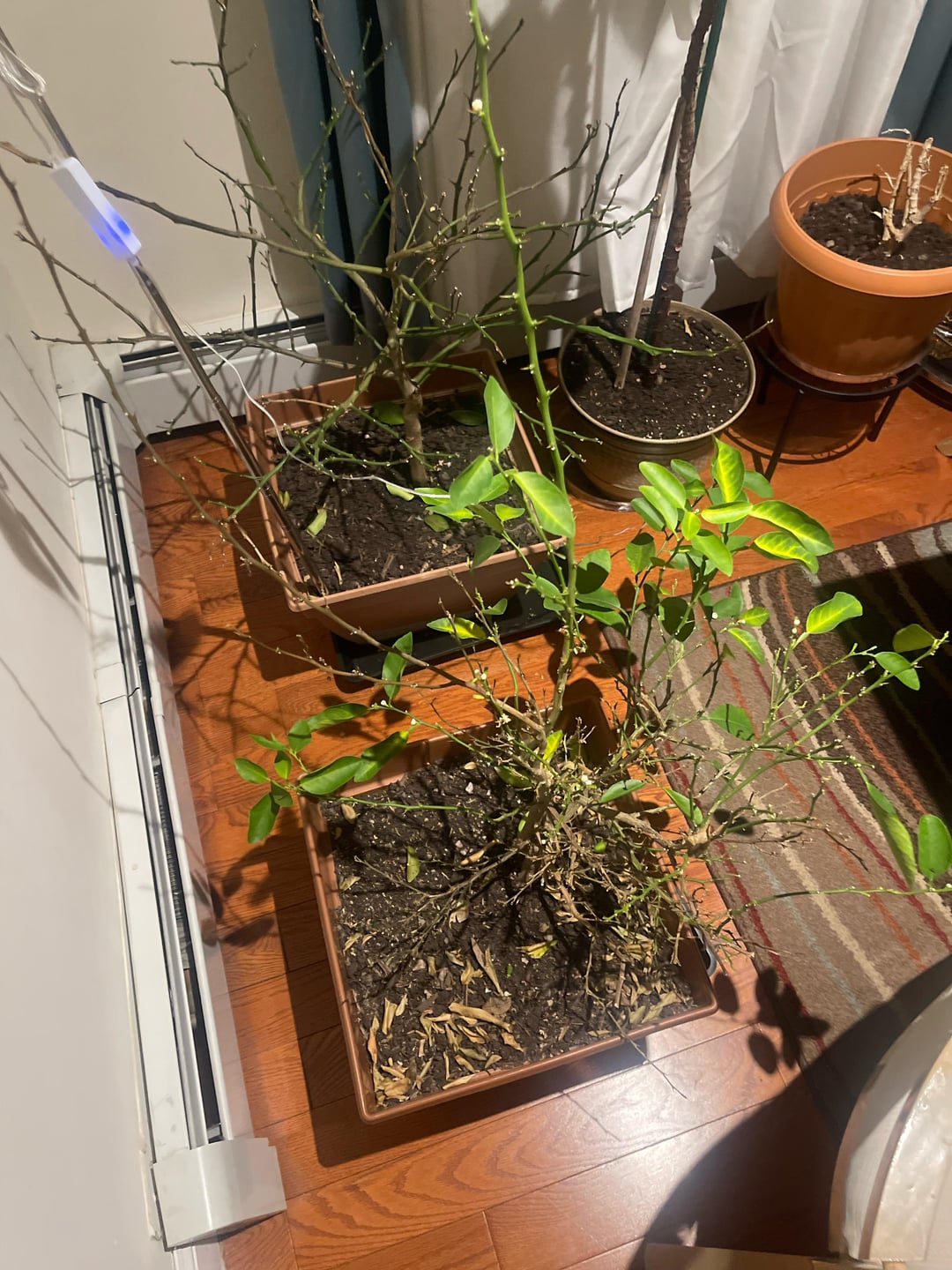 うちのレモンの木には葉っぱが一枚もありません。うちのライムも急速に葉を落としています。ニューヨーク市ゾーン 7B、そこは家の前の大きな窓のそばにありましたが、北極の爆風の間に冷たい風が入ってきたため、窓を後ろに移動しました。それまでに葉をたくさん落としてしまい、移動させたときに残りの葉も落としてしまいました。彼らを救うために私にできることがあれば、ぜひ知らせてください。レモンもライムも一粒も手に入らなかったのですが、冬の家での見た目がとても気に入りました。