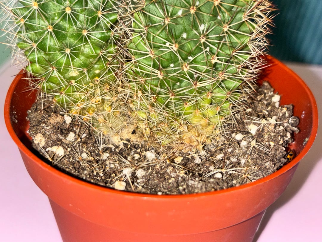 現状 – すべてのサボテンの上部はしっかりしていますが、大きい 2 つのサボテンの底部は押すと少したわむことがあります。大きなものは底部にも変色があり、細いものには元の土壌境界線のわずかに上に小さな変色斑点があります。彼女は元の鉢と土の中で私の窓辺に住んでいます、そして私は彼女にあまり頻繁に水を与えません。過去に水やりをしたのは12月上旬頃と2月上旬頃の2回です。間違いなくダメだった部分は、彼女が小さいときから最も太陽の光が当たらなかった背中の部分であることをメモしておきます。