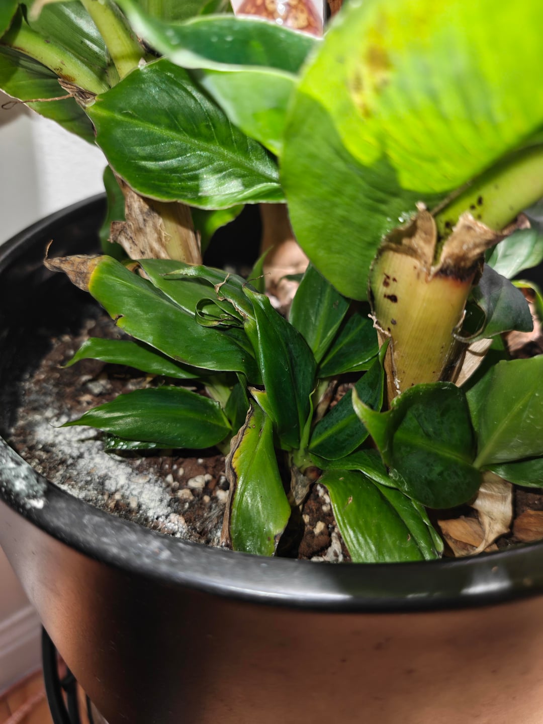 根元までしっかり剥がしました。その時点では、壊死しているようには見えなかった子は1匹だけで、枯れていない古い葉が数枚あったので、私の推測は正しく、新しく確立された根のほとんどは腐っているようです。とにかく、完全なリポジトリですべての腐敗を取り除き、問題を解決しました。そして夏の終わりがそれを室内に持ち込んだ。私は自分で作った分厚いミックスを使いました。素敵で風通しが良いですが、水分を保持するのに十分なコココイア。それ以来、新しいリードはどれも腐敗の兆候を示していません。