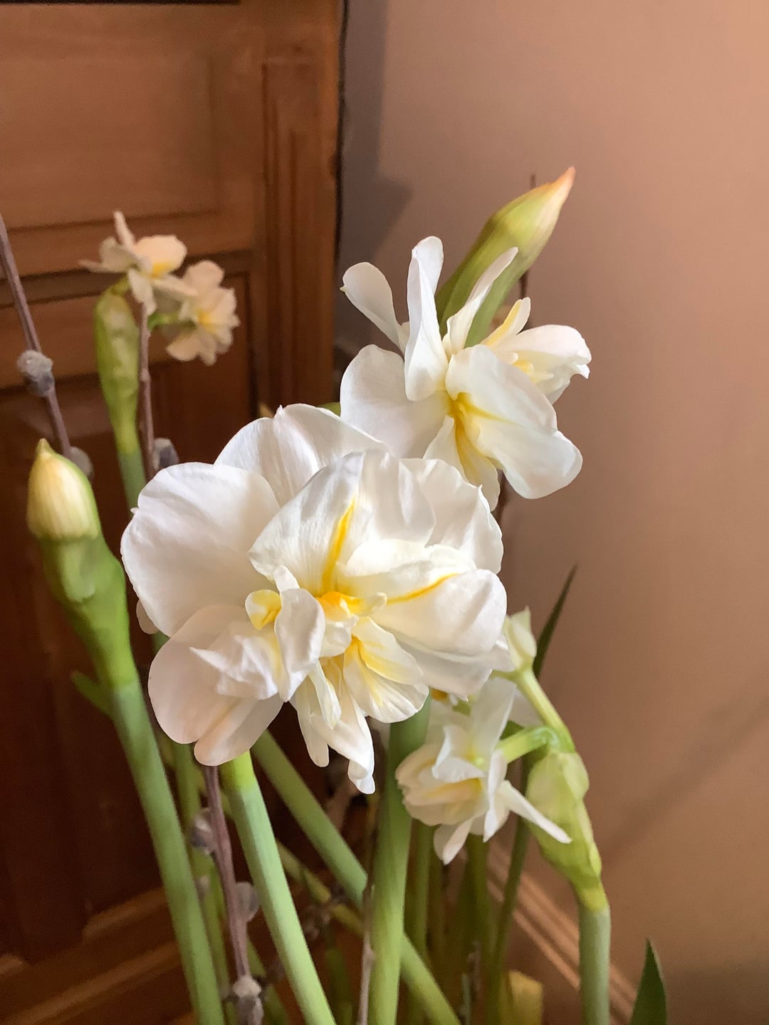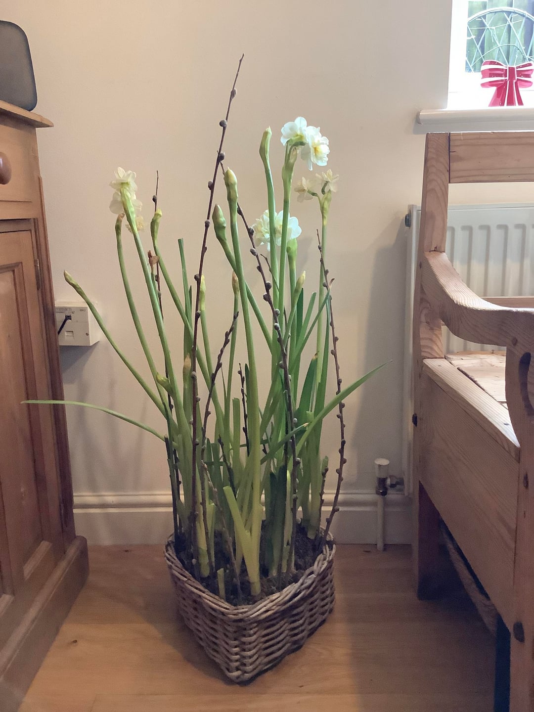 私の水仙のブライダルクラウンに植えたのですが、この高さ72センチの大きな美しい花は見たことがありません。サポートとして機能するためにネコヤナギをいくつか切る必要がありました。