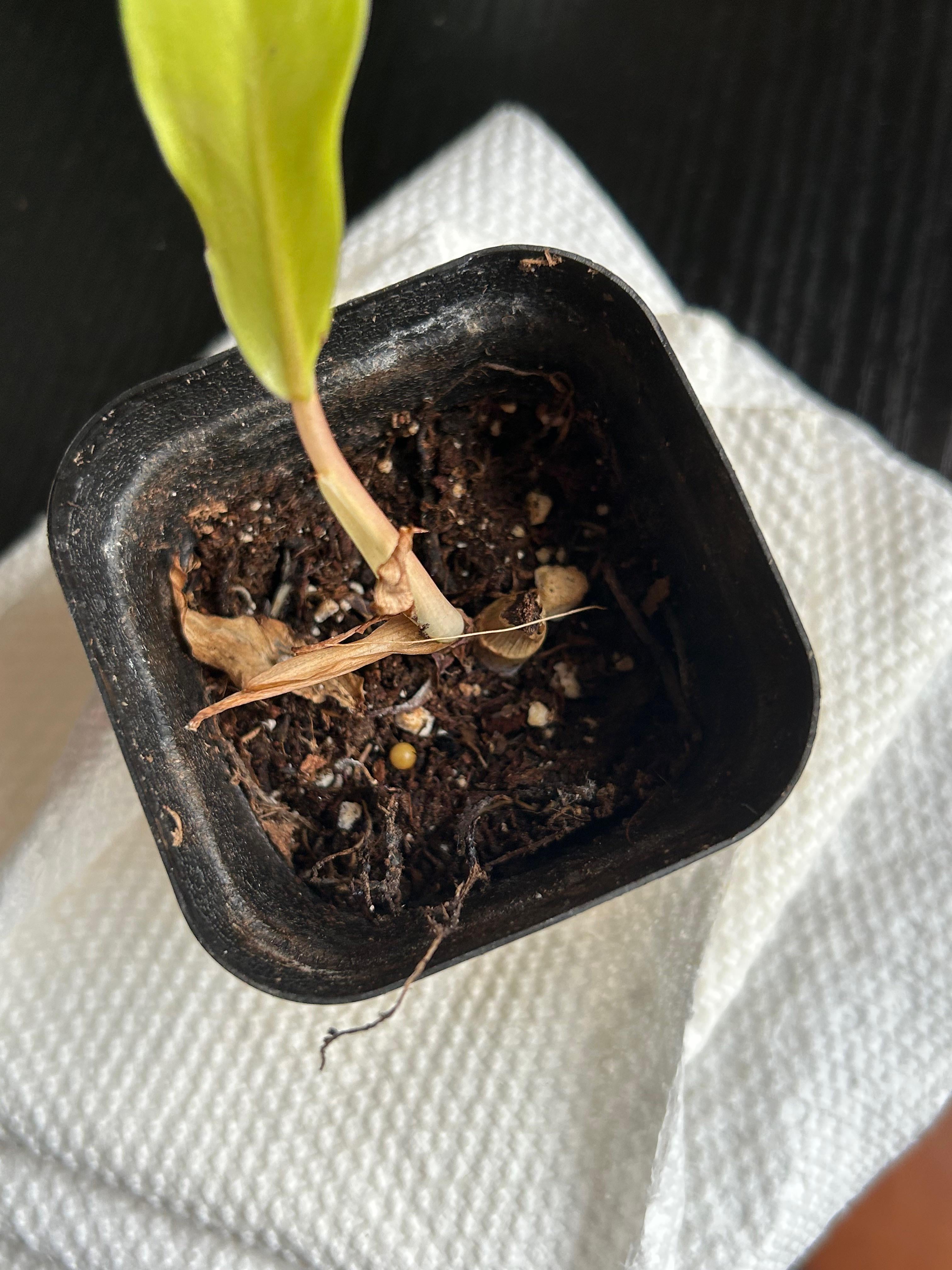 この植物は友人から譲り受けたもので、もともと小さな苗が3本あったのですが、そのうちの2本が大きな鉢に移せるほど大きくなったのでそうしましたが、その時は大きな鉢に植えるのに十分な土がなかったので、とりあえずこの人の土を大きな鉢に注ぎました。小さなプラスチックの鉢にさらに土を注ぐと、今はこんな感じです。この小さな黄色いボールは何ですか?卵?