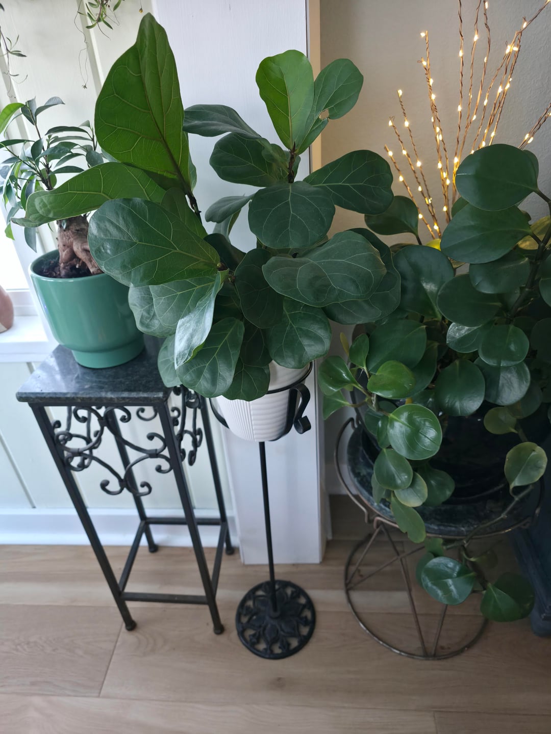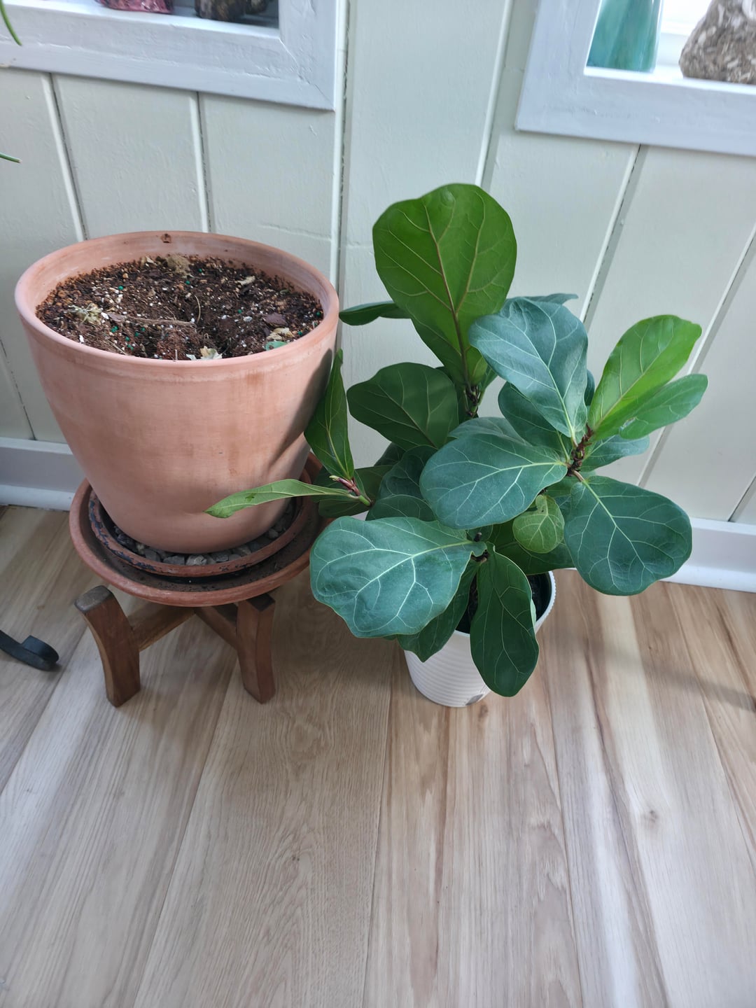 フィドルリーフフィグの子育ては初めてですが、入っていた自動給水ポットで約6か月間この貴重さを保ち、幸せそうに見え、新たな成長を遂げています。彼らが植え替えや移動に敏感なのはわかっています。写真 #1 は現在の場所、写真 #2 は可能な新しいポットと場所です。お部屋は全窓北/やや北西/東向きです。