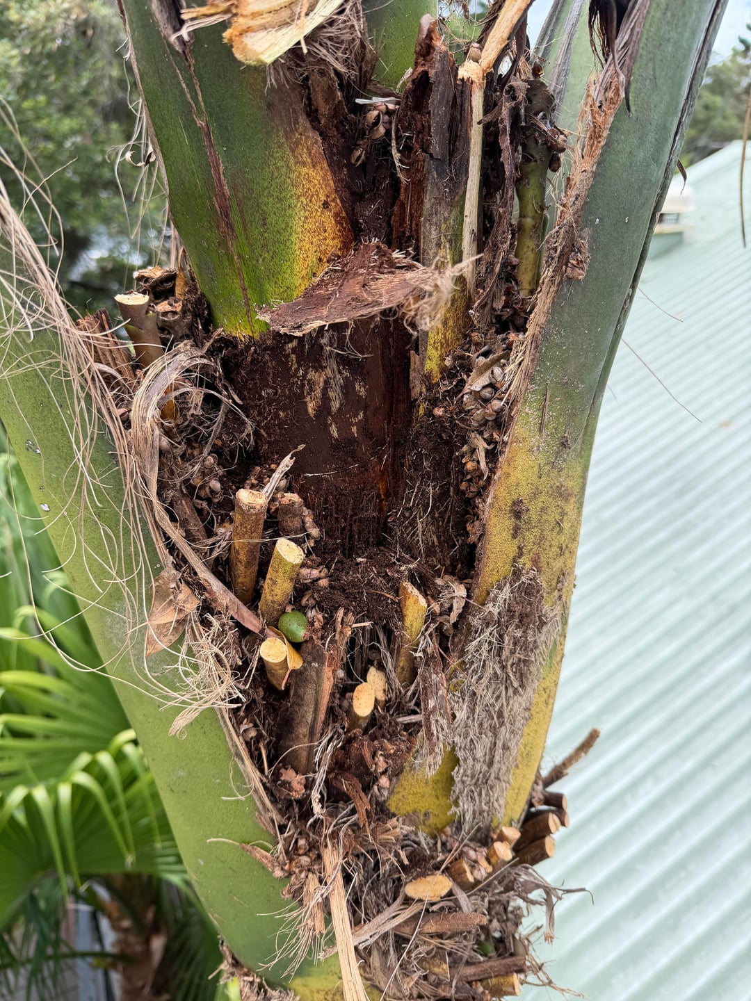こんにちは、みんな 私は樹齢30年、高さ約12メートルのヤシを持っています。ずっと健康だったのですが、2年前、新しい葉がかなりいびつな形をしていて、全長まで成長していないことに気づきました。 1年くらい新しい葉が出ません。切り戻しましたが、樹冠に枯れた植物や汚れがあることに気付きました。明らかなカビはありませんが、恐ろしく不健康です。樹冠の上部を完全に切り落としてしまうと、再び成長したり、新しい葉を生成したりする能力がなくなるのではないかと思います。切り上げてやり直しますか?