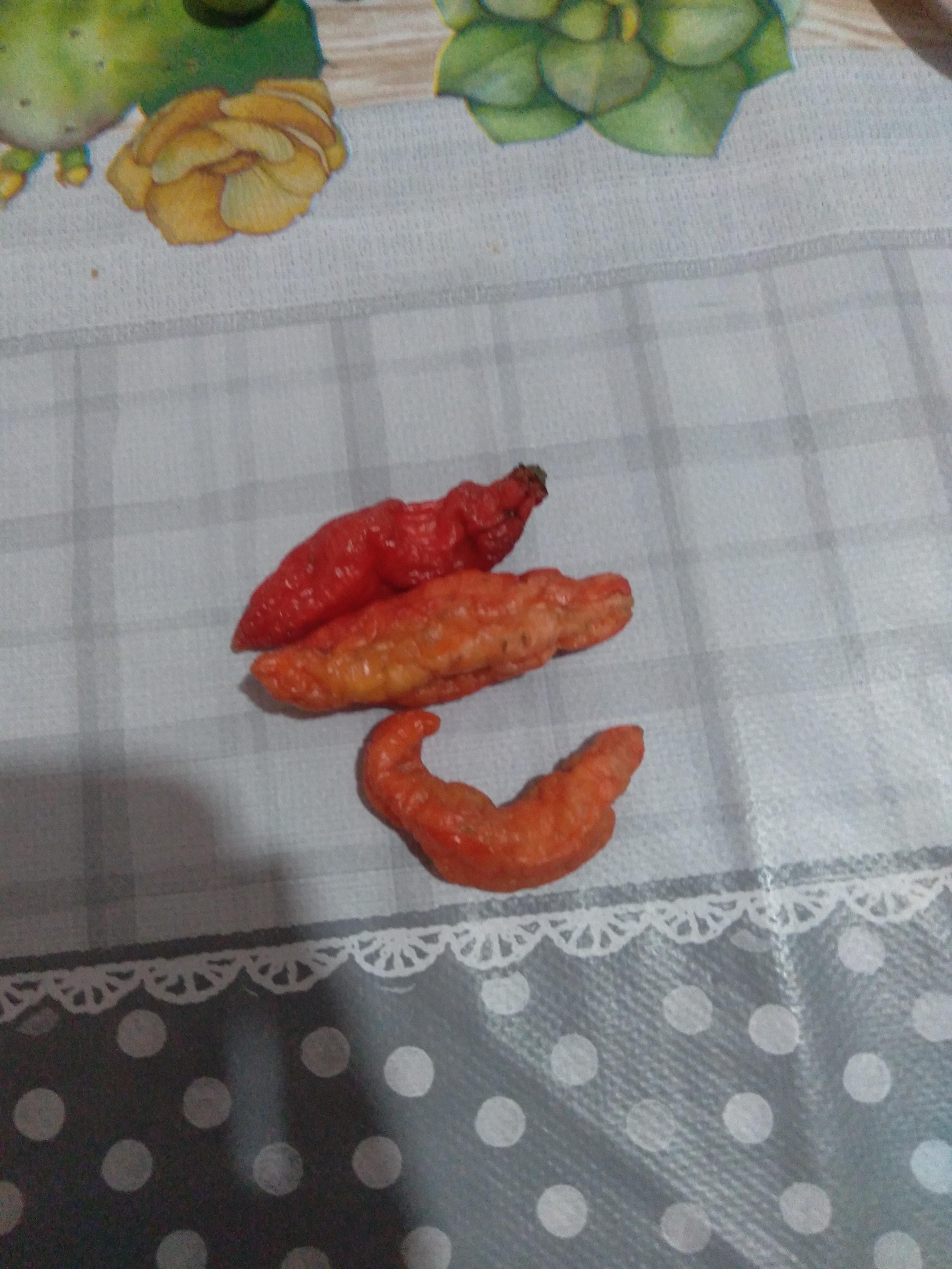 よくわかりませんが、未熟だとオレンジ色、熟すと濃い赤色になります。