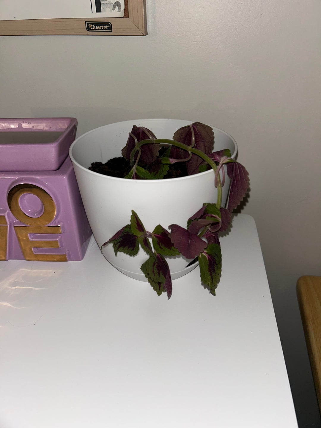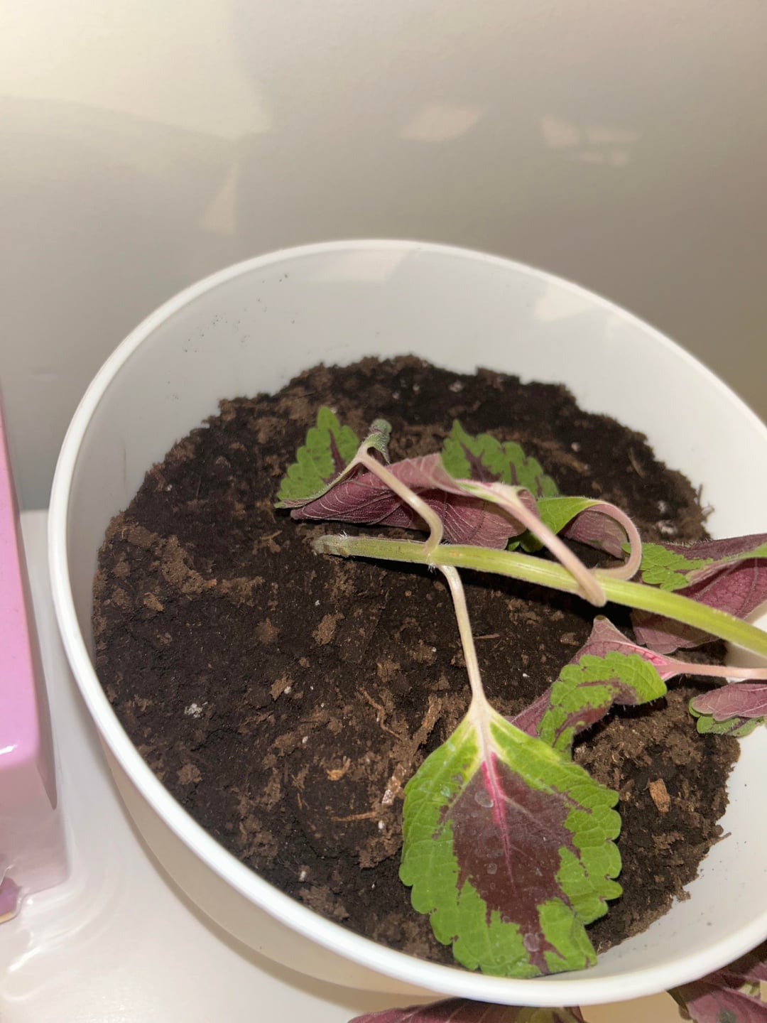 先生からコリウスの挿し木(だったと思う)をもらったのですが、ちゃんと植えたかな?小さな小さな根が付いた5インチほどの曲がった茎があったので、それを埋めただけです。