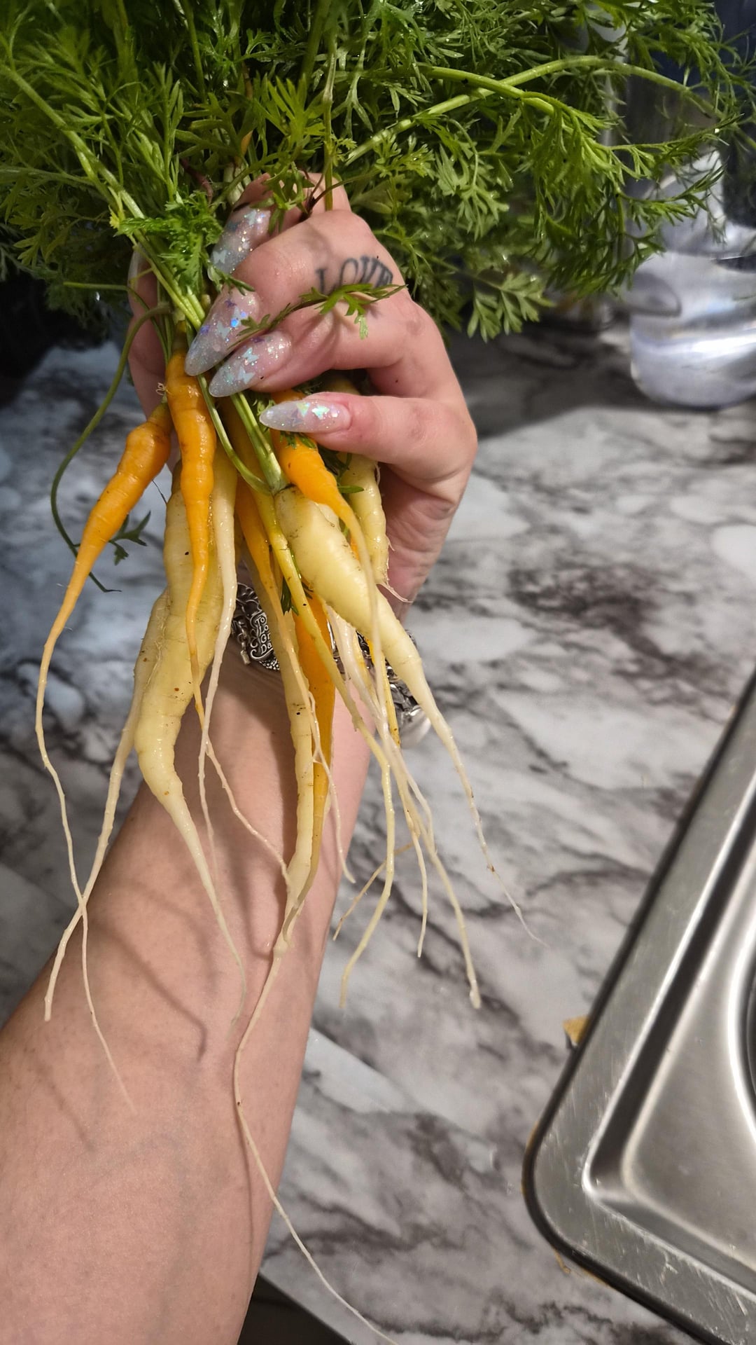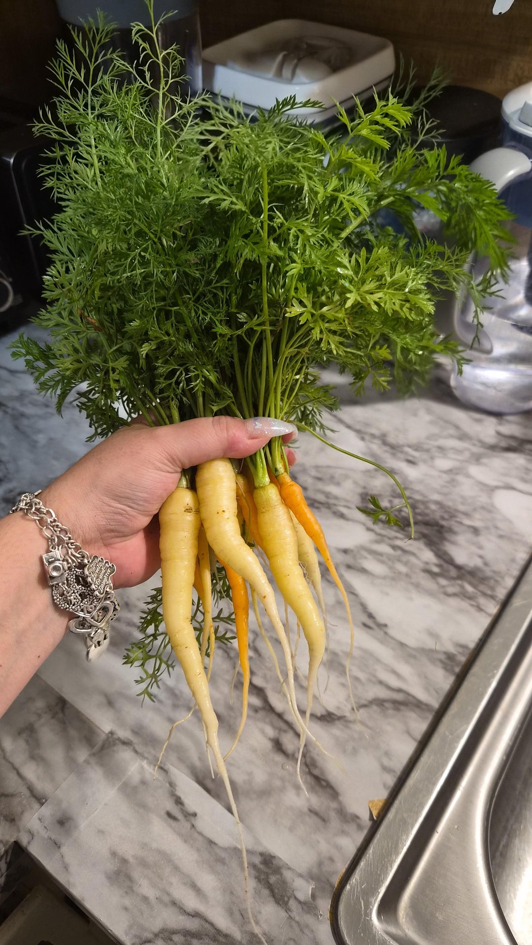 こんにちは、ゾーン 9 での初めてのレインボーニンジンの収穫を見てください。