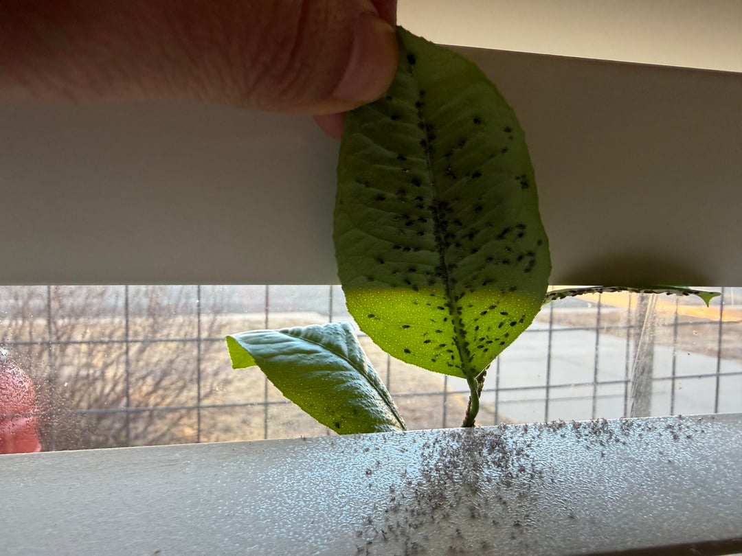 これらはアブラムシですか? 室内の矮性マイヤーレモンの木の花を眺めていたとき、花の1つに小さな黒い斑点があることに気づきました。そして、植物の窓側に残っている葉を見ました 😱 植物は屋内にあり、昨年は屋外にありましたが、昨年はずっと屋内にありました。