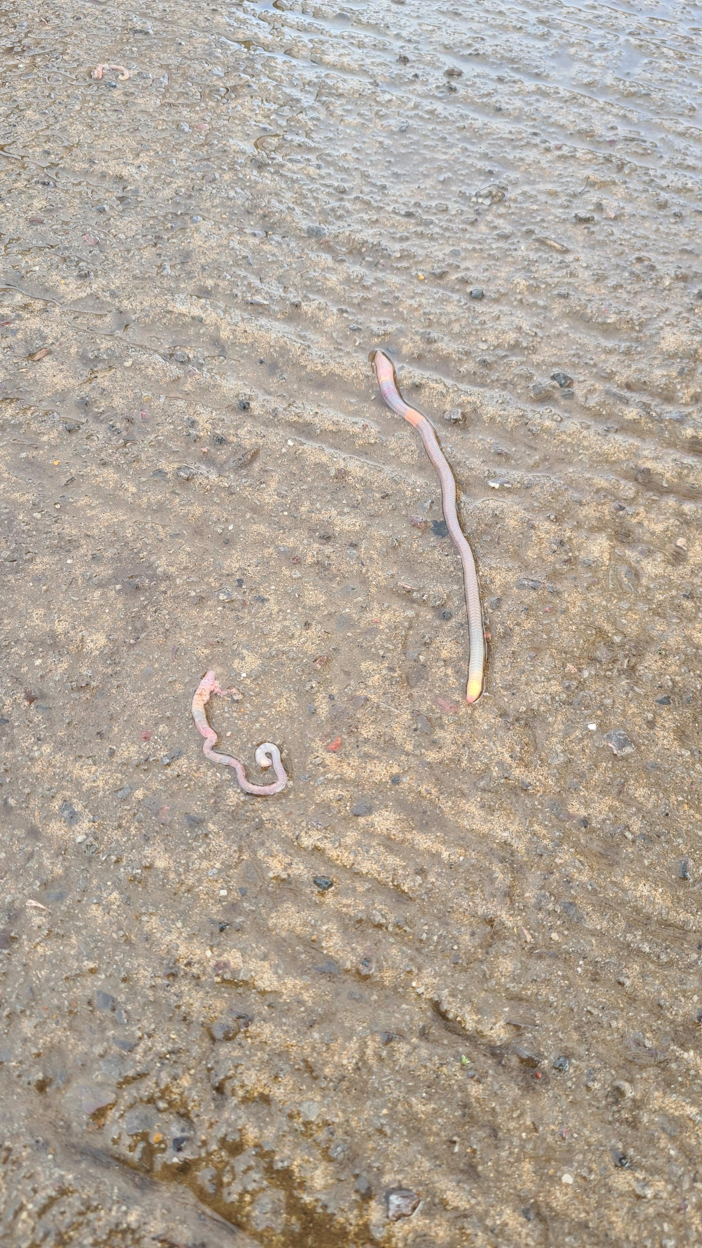 どうやらミミズたちは雨にうんざりして、コンクリートの上でぶらぶらすることに決めたようです。