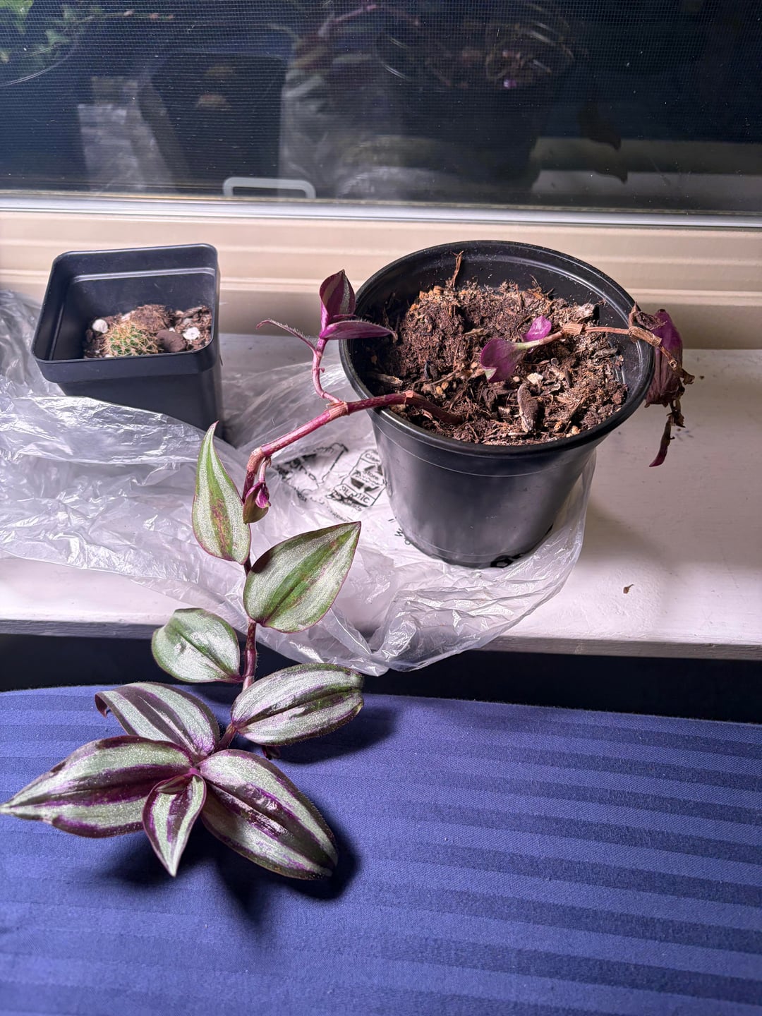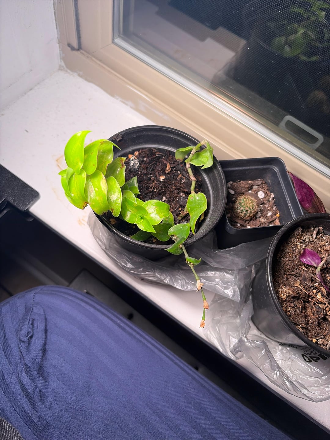 私には3人の小さな野郎がいて、生かし続けようとしているのですが、サボテン以外にも苦戦しているようです。サボテンは冬は冬眠すると思うので何もしていません。左側の小さなやつ(カメヅル?)は多分多肉植物だと思うので週に一度水やりをしています。右端の植物(放浪野郎)[jew]?) 私も週に一度水やりをします。彼らは南東向きの窓にいます、そして私は最近それらに9Wの成長用ライトを置きました、うまくいけば役に立ちます。放浪の男の鉢には2つの植物があり、そのうちの1つは元気だと思いますが、クソのように長いだけで、もう1つは控えめに枯れています。アドバイスはどれも役に立ちますが、自分が何をしているのか本当にわかりません。ビニール袋はあくまでも湿気を保つためのものです。 1ヶ月ほど前に購入したときのパーライト砂と培養土。
