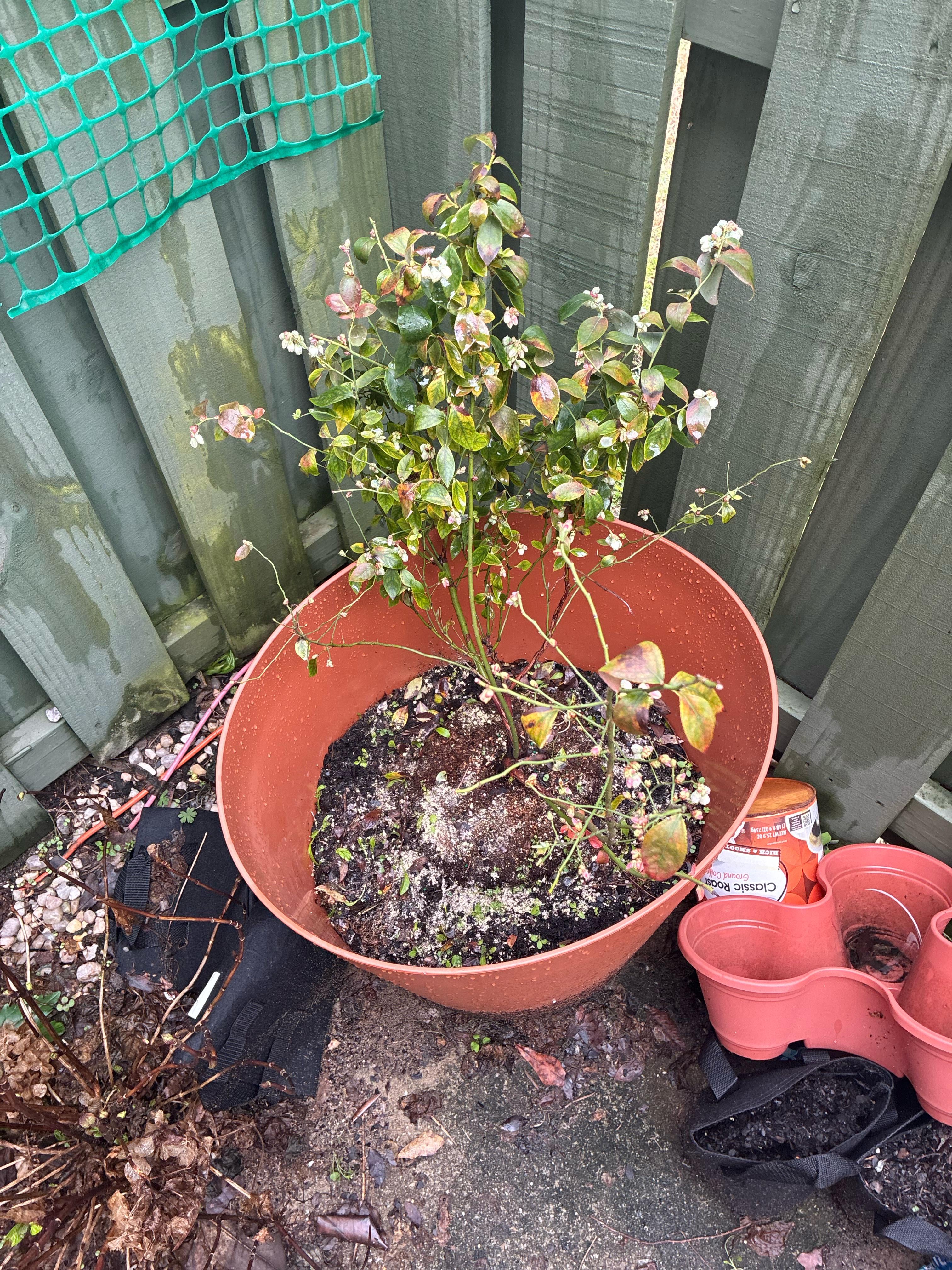 うちのブルーベリーの木の調子があまり良くありません。葉が垂れ下がって赤や茶色に変色しているので、土壌酸性化剤と骨粉を土に入れて何とかしようとしましたが、見た目は以前より悪くなりました。植物を助けるために何をすればいいのかわからないので、より良く世話をし、このことが再び起こらないようにする方法について誰かが私にアドバイスをくれるのではないかと思っていました。ありがとう。