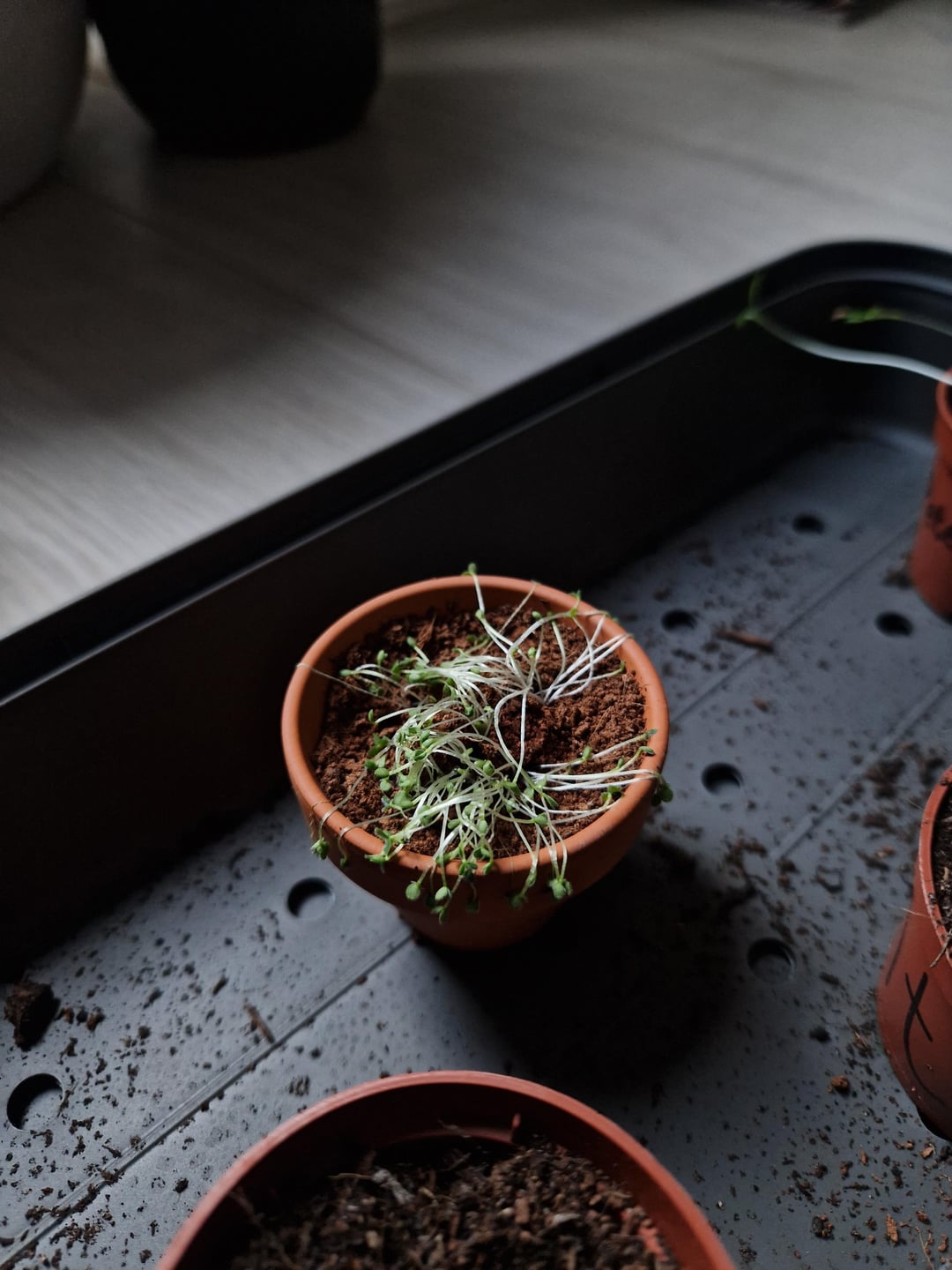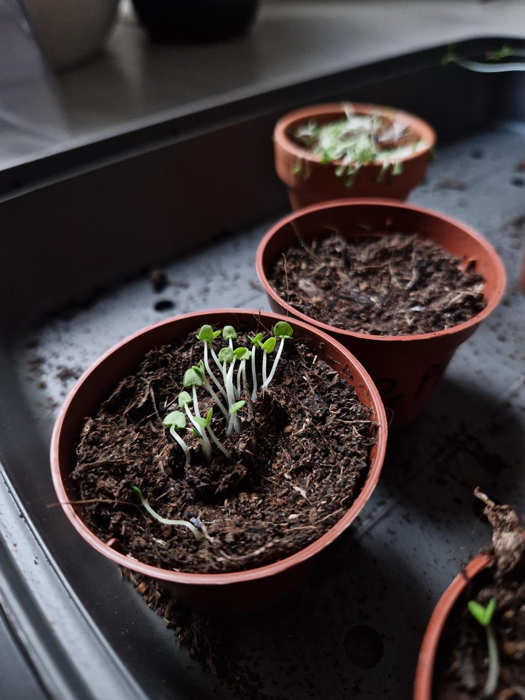 近くの写真をいくつか添付しますが、基本的に私のバジル植物はすぐに発芽しましたが、その後ゆっくりと止まりました。そして、パセリもすぐに芽を出し、かなり背が高くなりましたが、見た目も少し寂しそうです。ミントを植えたのですが、土の奥に植えすぎて発芽すらしなかったことに後になって気づきました。
