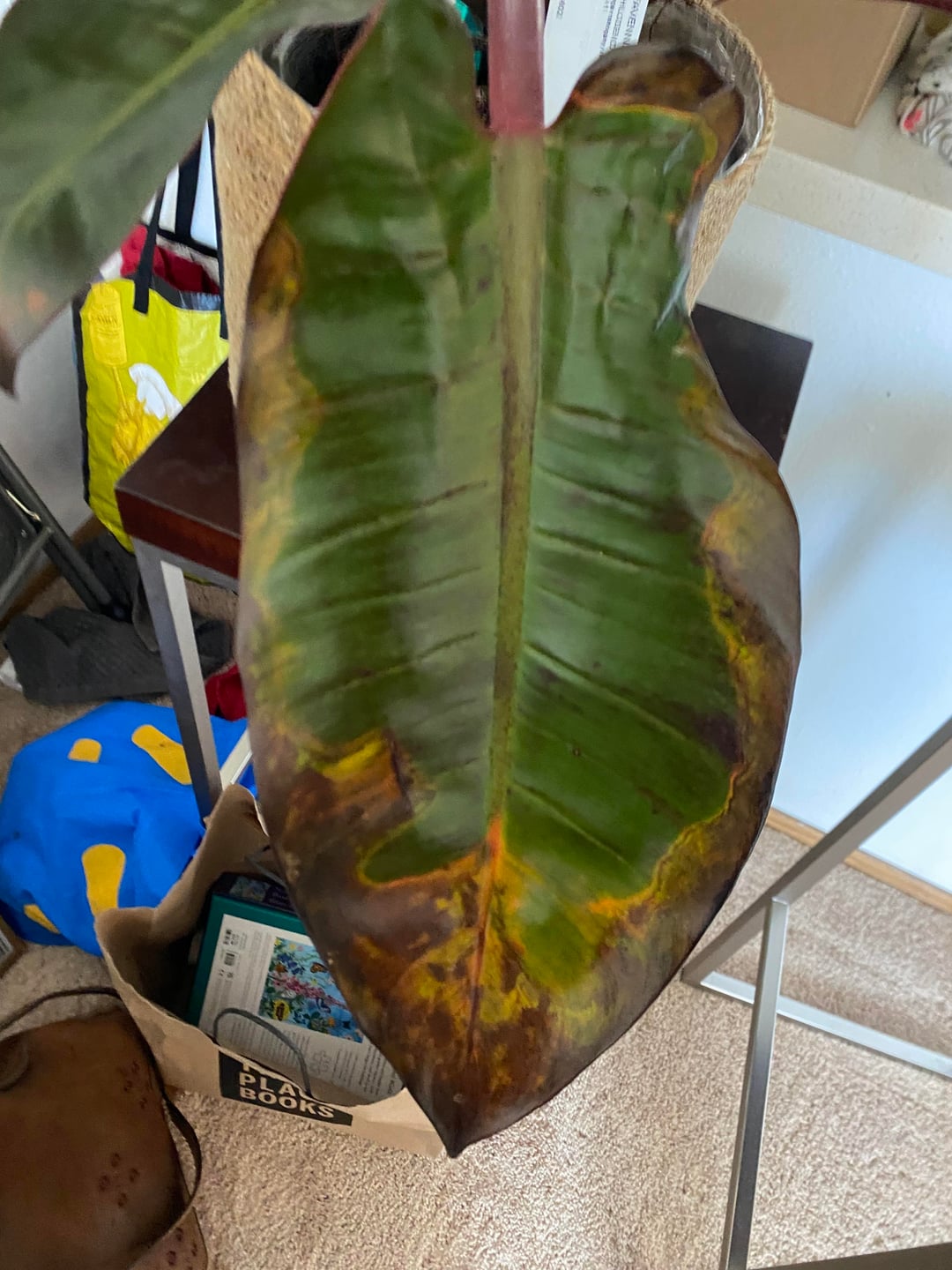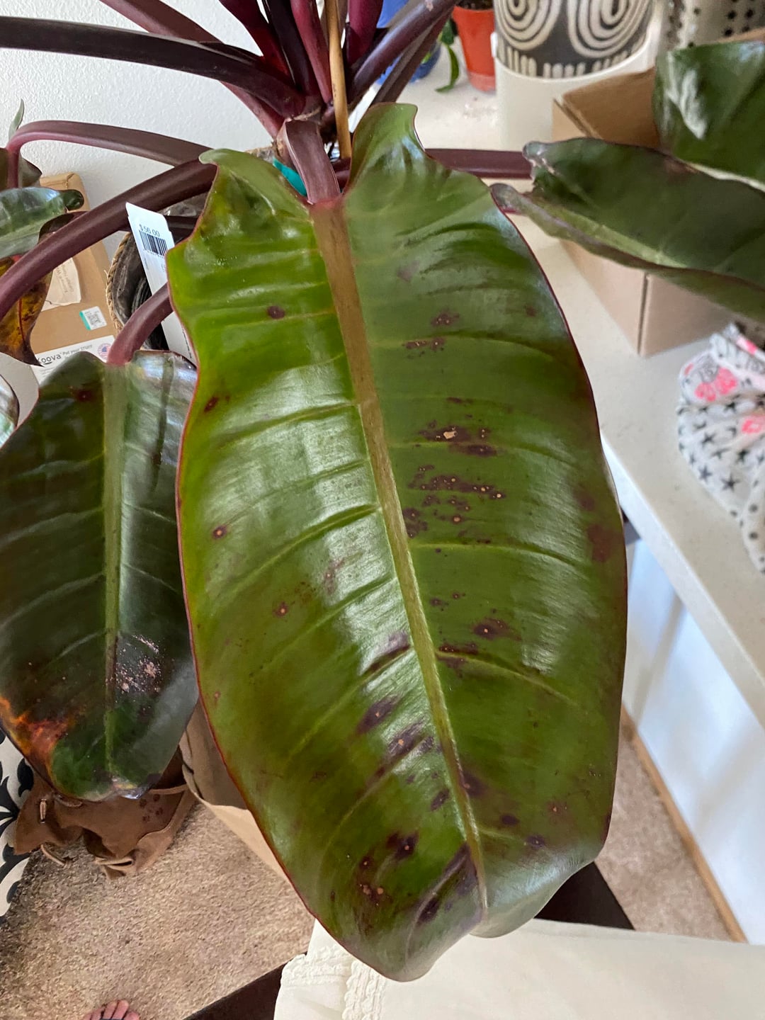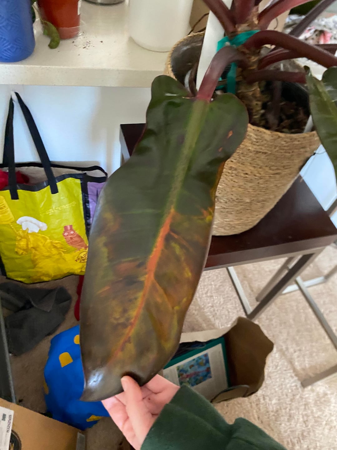 いつも葉の色の変化がありましたが、最近それがより大きな問題であると心配しています。葉の質感はほとんど変わっておらず、とても艶やかです。先週から育成ライトの下に置き始めましたが、いくつかの異なる設定があり、私は紫の設定にしました(ルームメイトがそれを一番気に入っているためですが、変更できます)。もう少し日が当たり、もう少し湿気の多い部屋に移すつもりです。現在バルコニーに出しているので、庭/ペット/蜂に安全な3inone除草剤/殺虫剤スプレーで処理しました。私を助けてください!これは母が亡くなる前に私にくれた最後の植物で、これが枯れたら私は悲しむでしょう。最後の写真はお店に入荷したときのものです。
