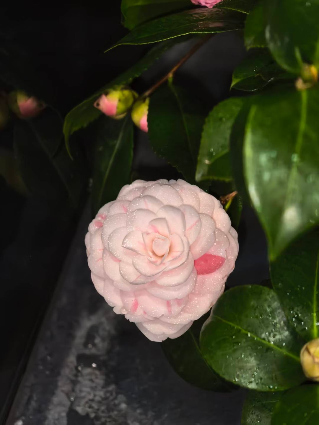 このピンク色の椿が咲いたばかりなんですが、具体的に何という品種かわかる方いらっしゃいますか?