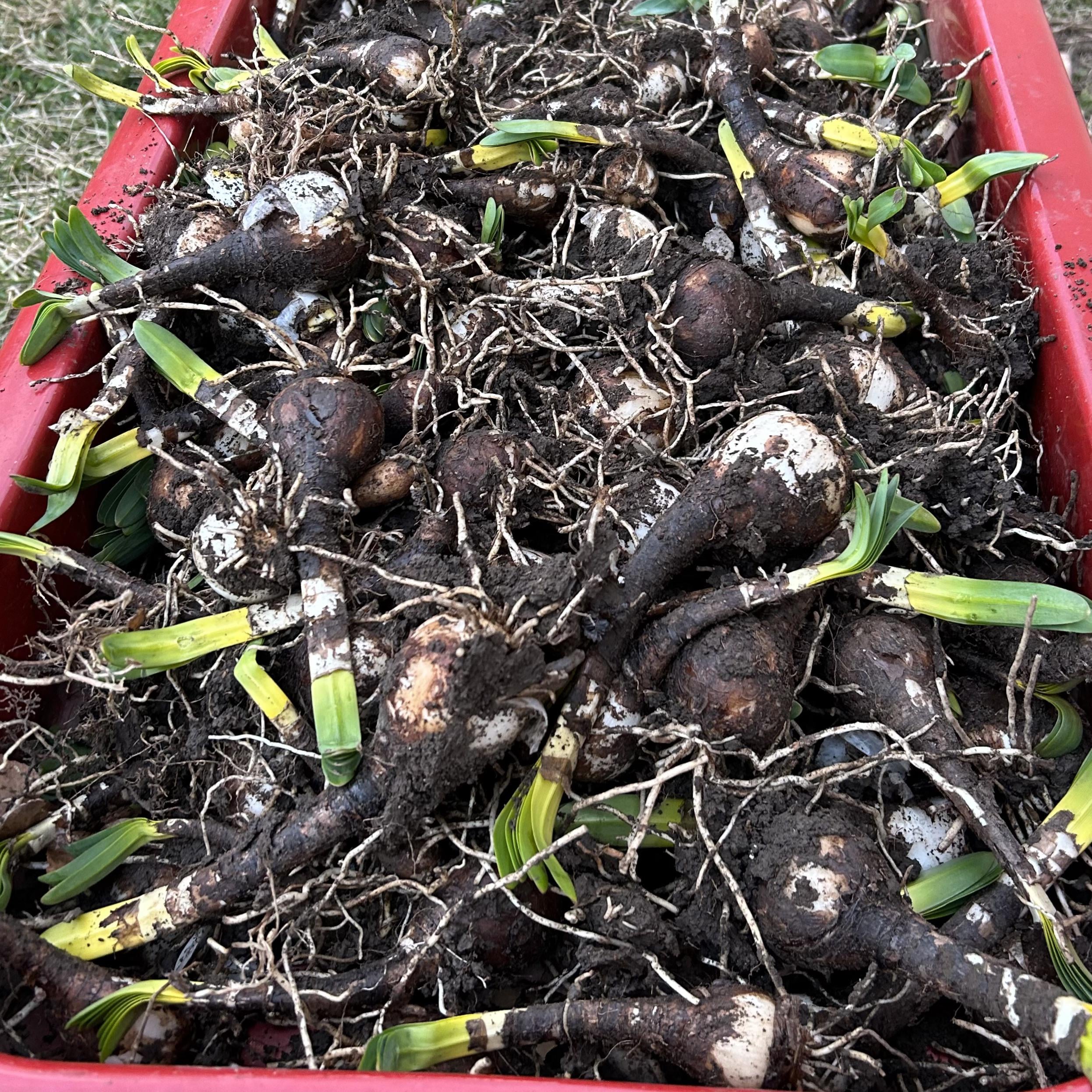 リーリーの咲かない部分があります。それらを掘り出して、地下で何が起こっているのかを確認することにしました。驚いたことに、予想していたよりも 30 倍多くの球根を見つけました。これは約3〜4フィートのセクションで、あと5フィートあります。いつまで無視されてきたんだ!どれくらいの頻度で分けてあげればいいのでしょうか?本当に 1 つの球根で完全な植物ができるのでしょうか? 🫣😂 これらすべてを一体誰と共有すればいいのでしょうか?