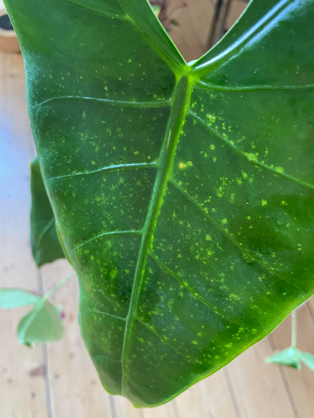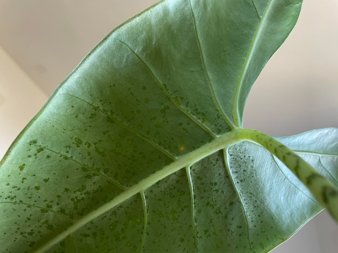 私のクワズイモゼブリナのこれらの斑点が何であるか誰か知っていますか?わずかに透明で、光に当てるとよく見えます。私はアザミウマの治療を定期的に行っています。皆さん本当にありがとう🩷🩷🩷
