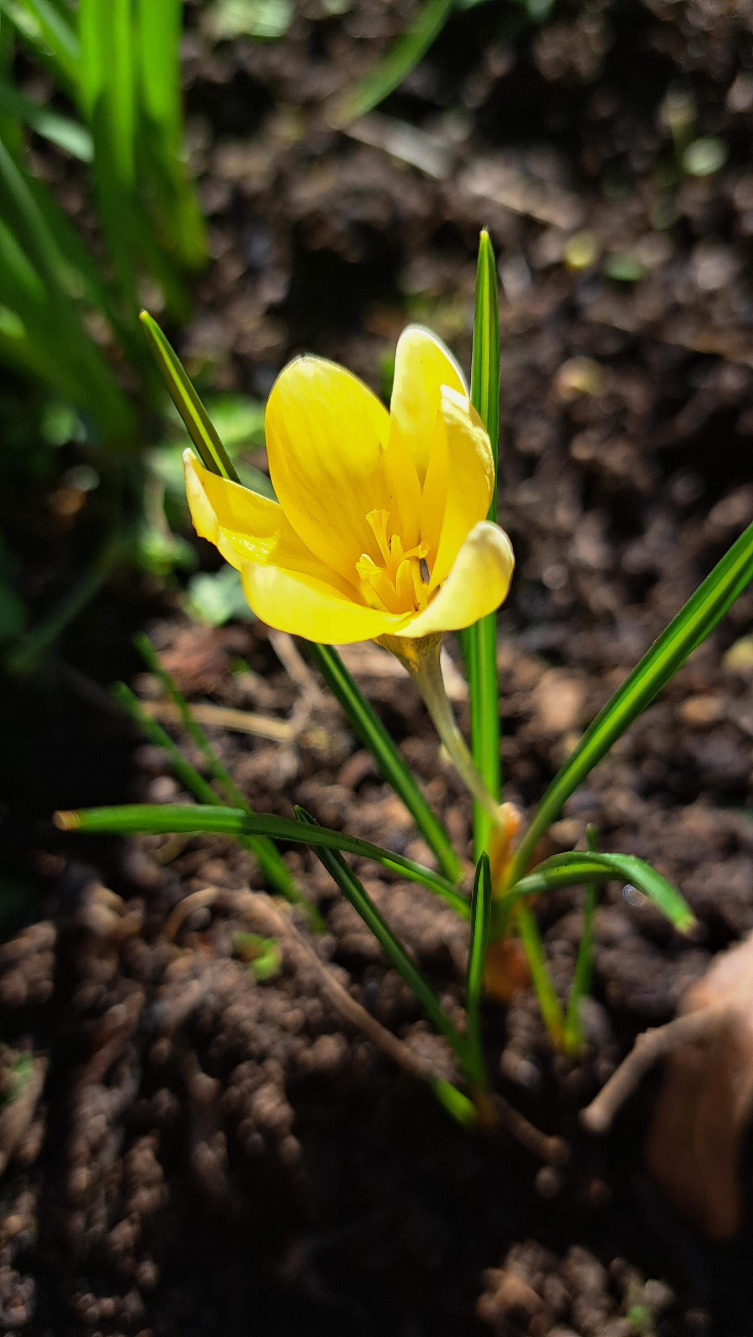 私の春一番の花がここにあります! 叫んでごめんなさい、とても興奮しているんです。去年クロッカスの球根を100個購入しましたが、紫色になるはずでした。黄色が混ざっていることにがっかりしたとは言えません。 🥰
