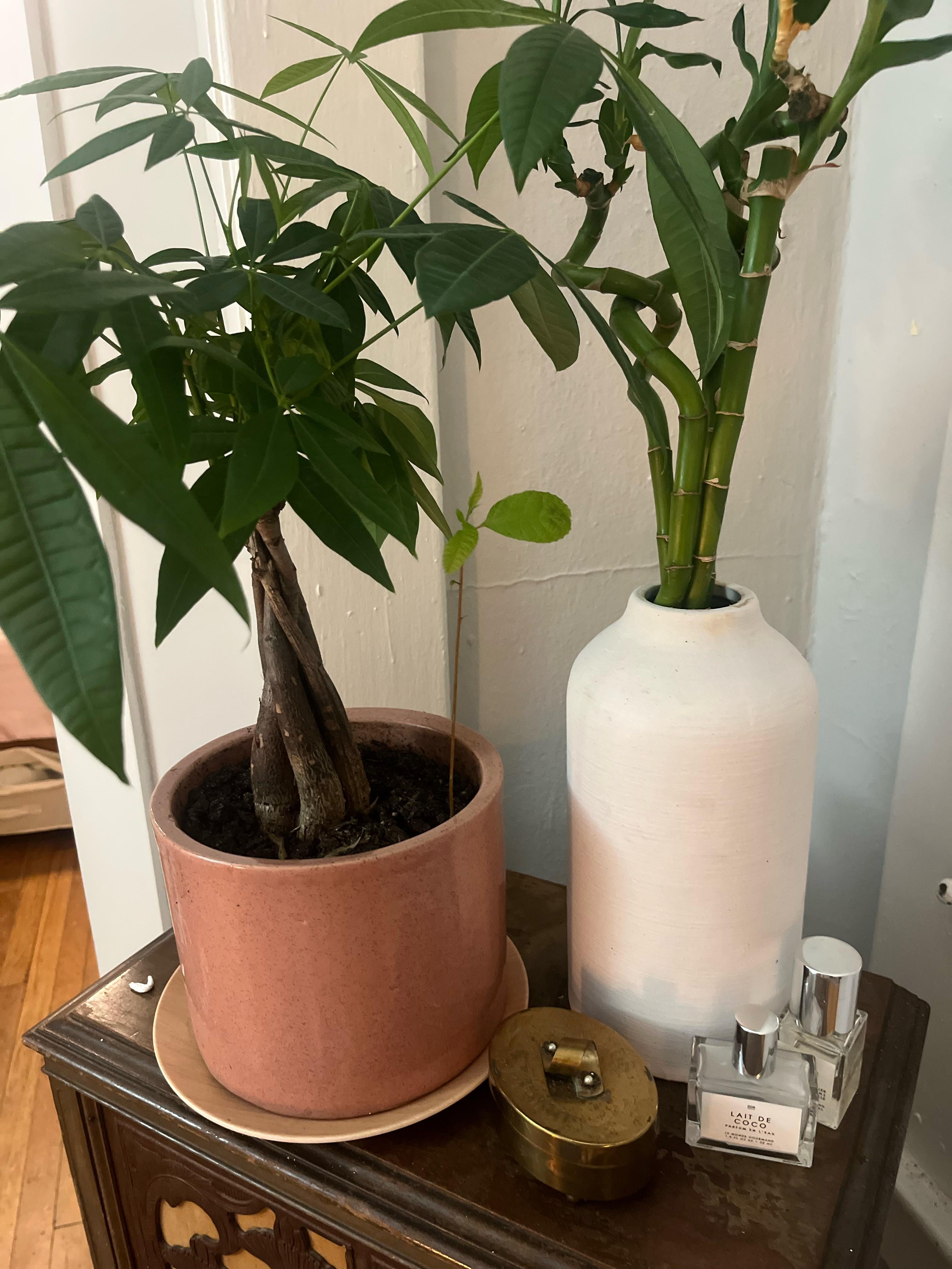 私はこれについては初心者です – 明白な答えがあると確信していますが、イチジクの鉢の中で成長しているこの新芽は何ですか?