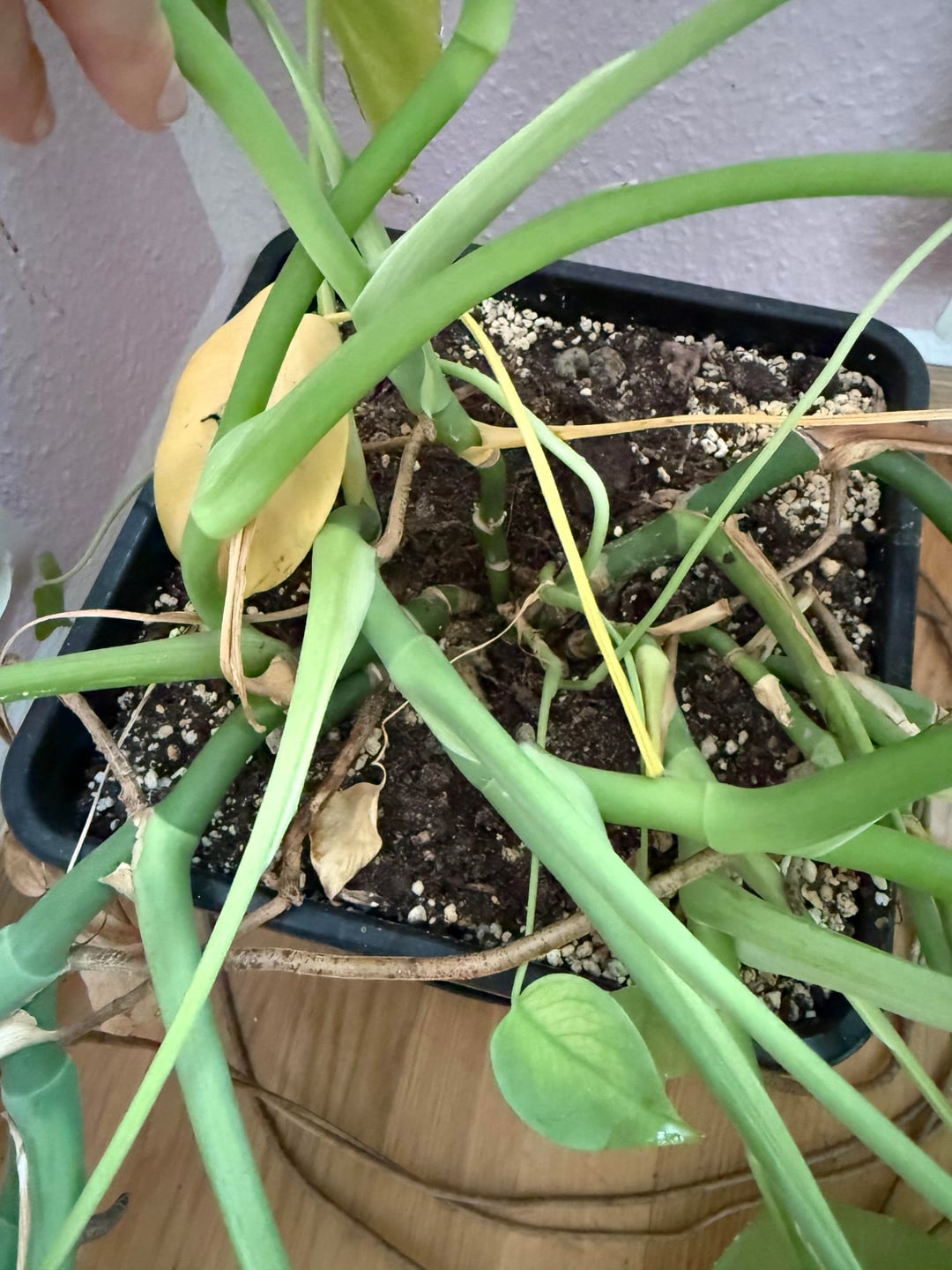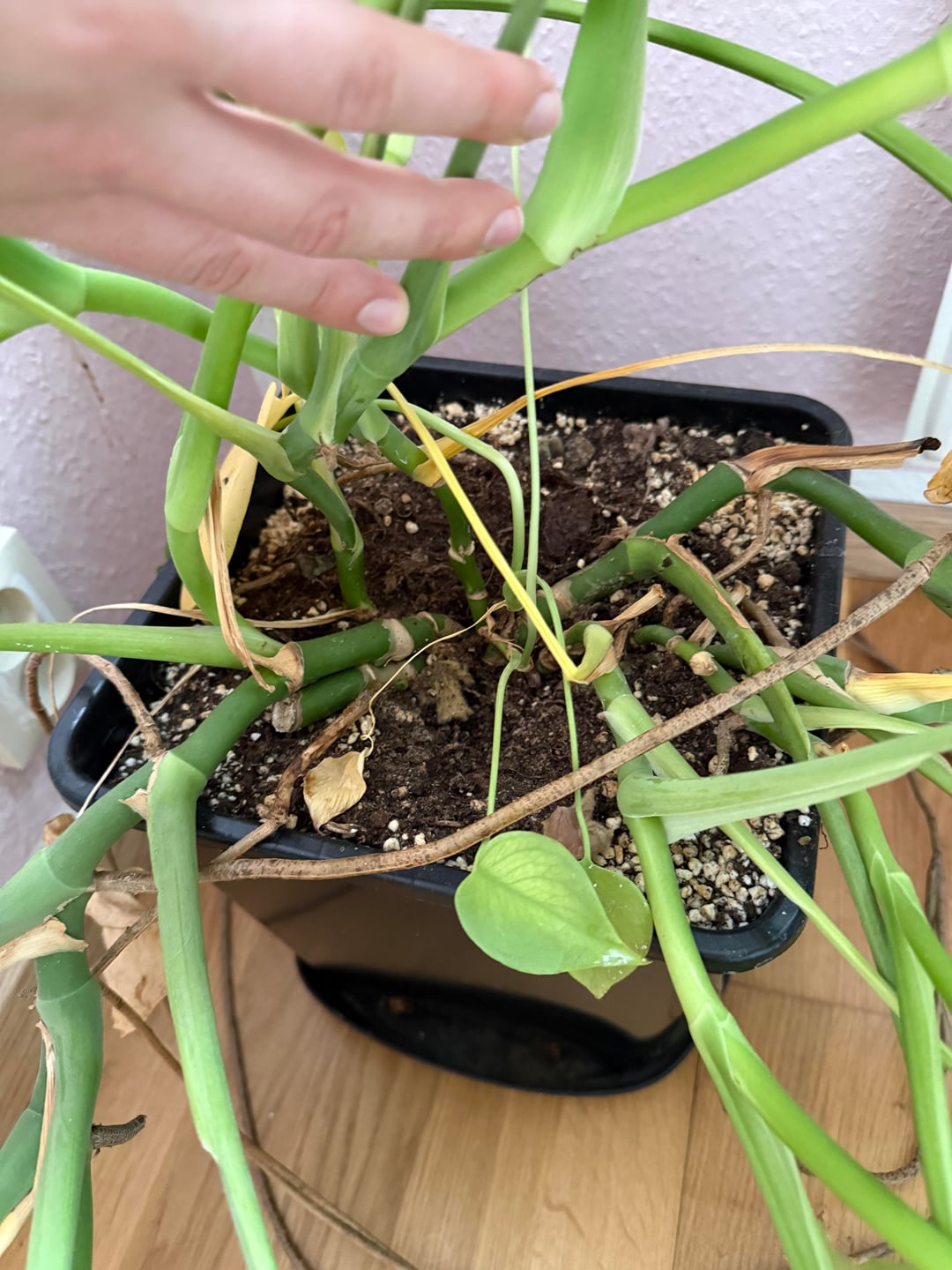 モンステラを手伝ってほしいんです!どうしたら一番良くなるのかよくわかりません… 以前に一部を分けて、大きめの鉢に移したのですが(切り取った部分は元気に育っています!)、今は少し残念な感じで、鉢の中に詰め込みすぎているのかな?それを最も良く助ける方法についてアドバイスが必要です。また分割したほうがいいでしょうか?大きな鉢に移すだけですか?助けていただければ幸いです、ありがとう!