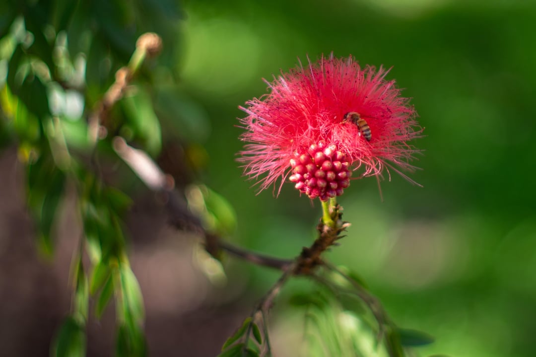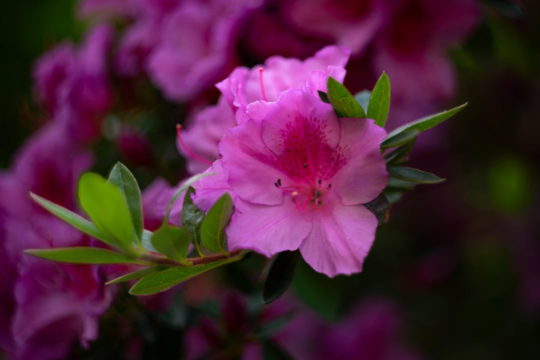 ヴィンテージヤシカとヘリオスレンズで撮影。ツツジ、カンナリリー、レッドパウダーパフ、ヤブツバキ。
