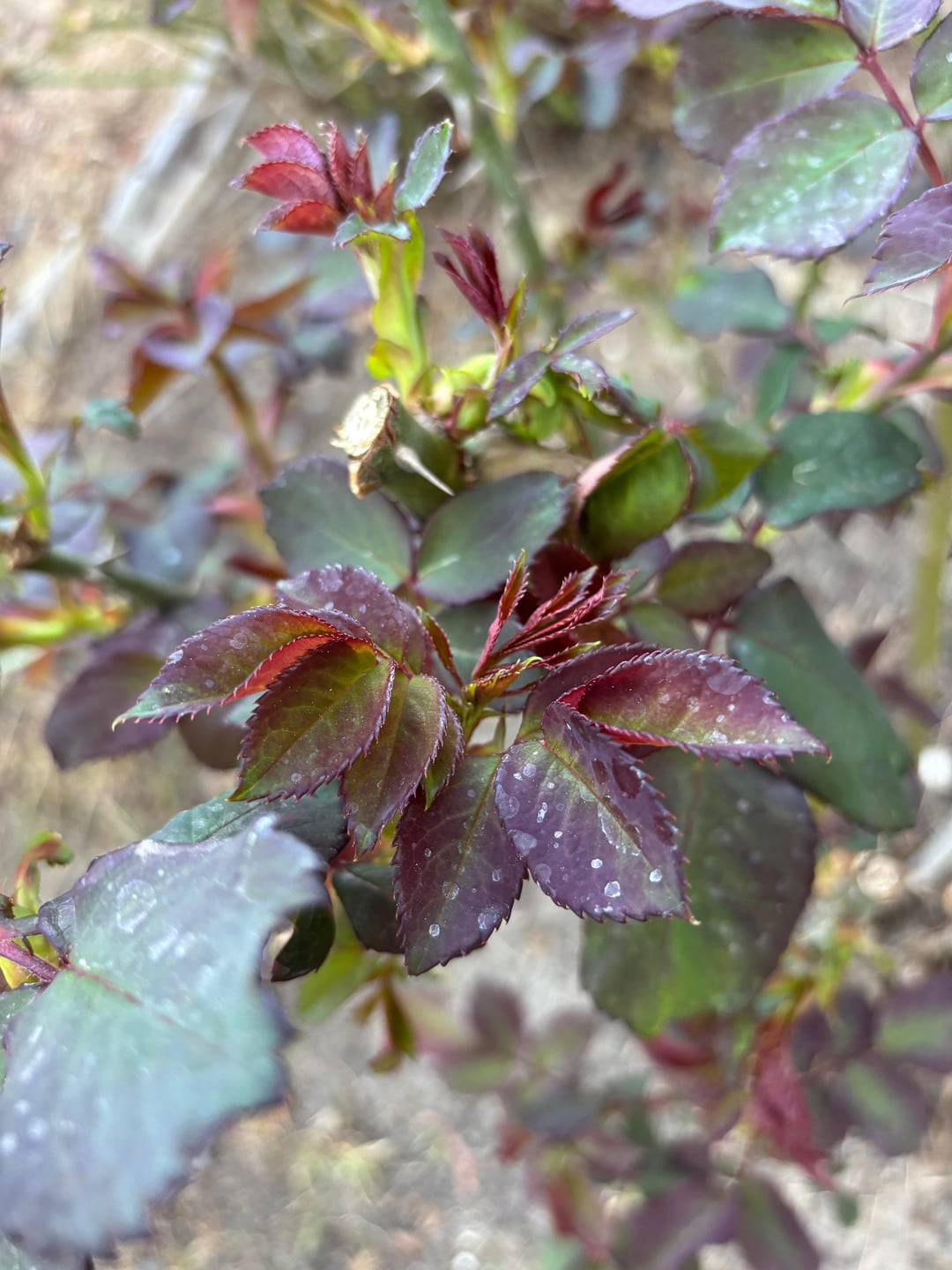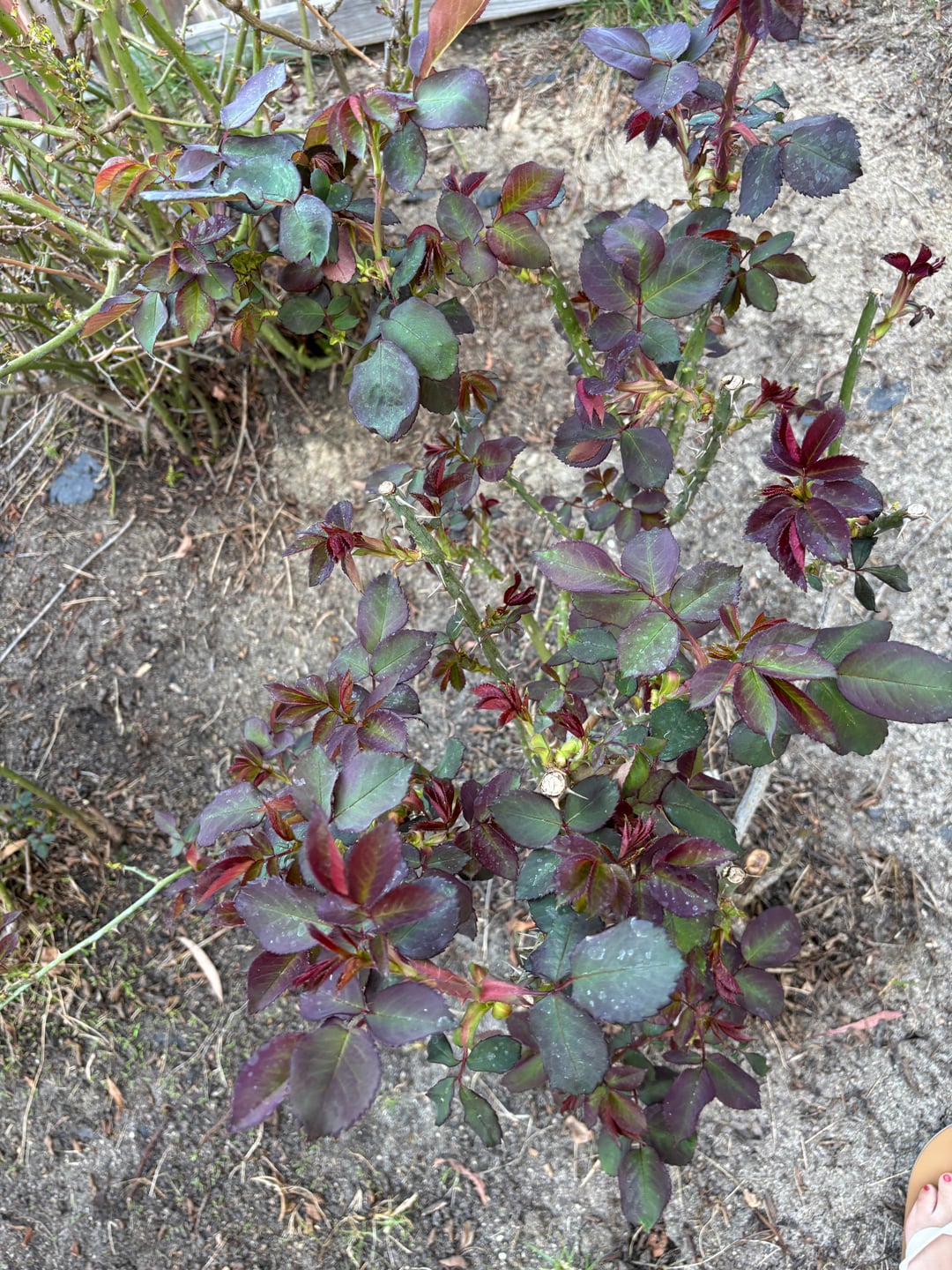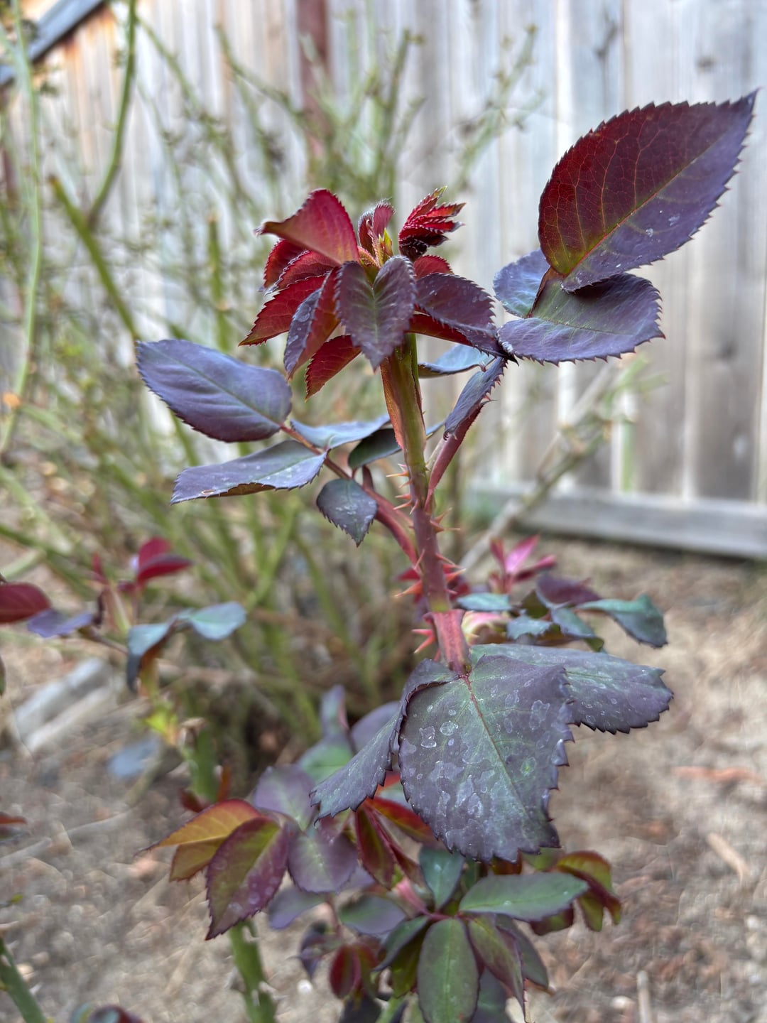このバラは根元にとげのある木の枝があるので、単にとげのある品種かもしれませんが、皆さんの意見を知りたいです。すぐ隣にある他の3つのバラとは明らかに違う種類のバラですが、成長はより赤く見えます。