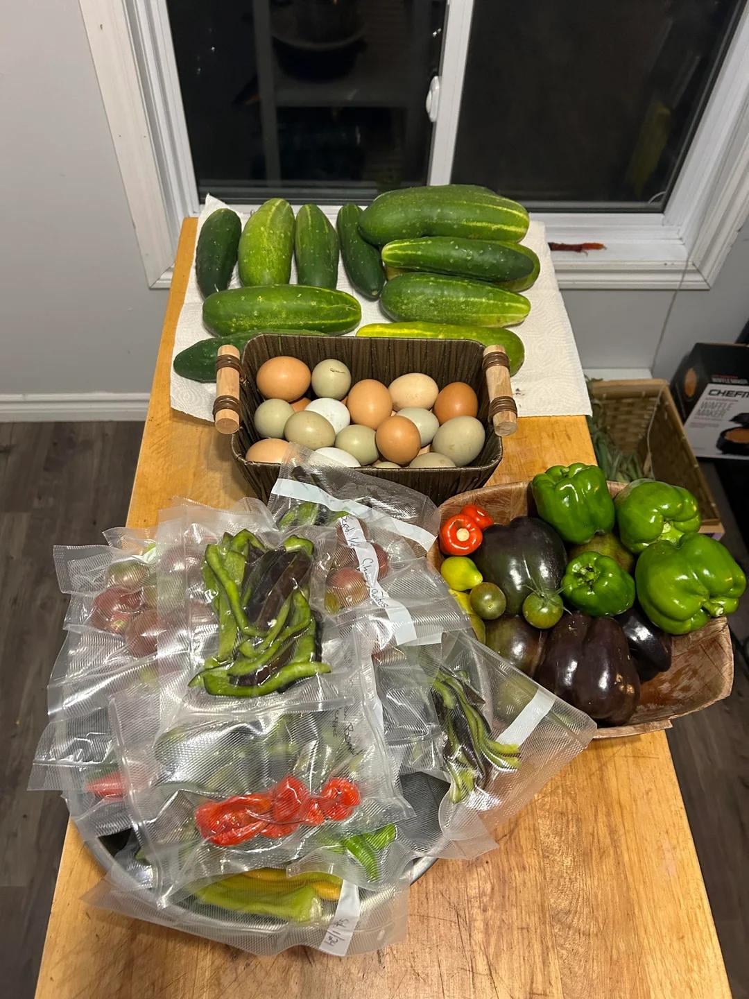 裏庭の菜園で収穫したものを少し。