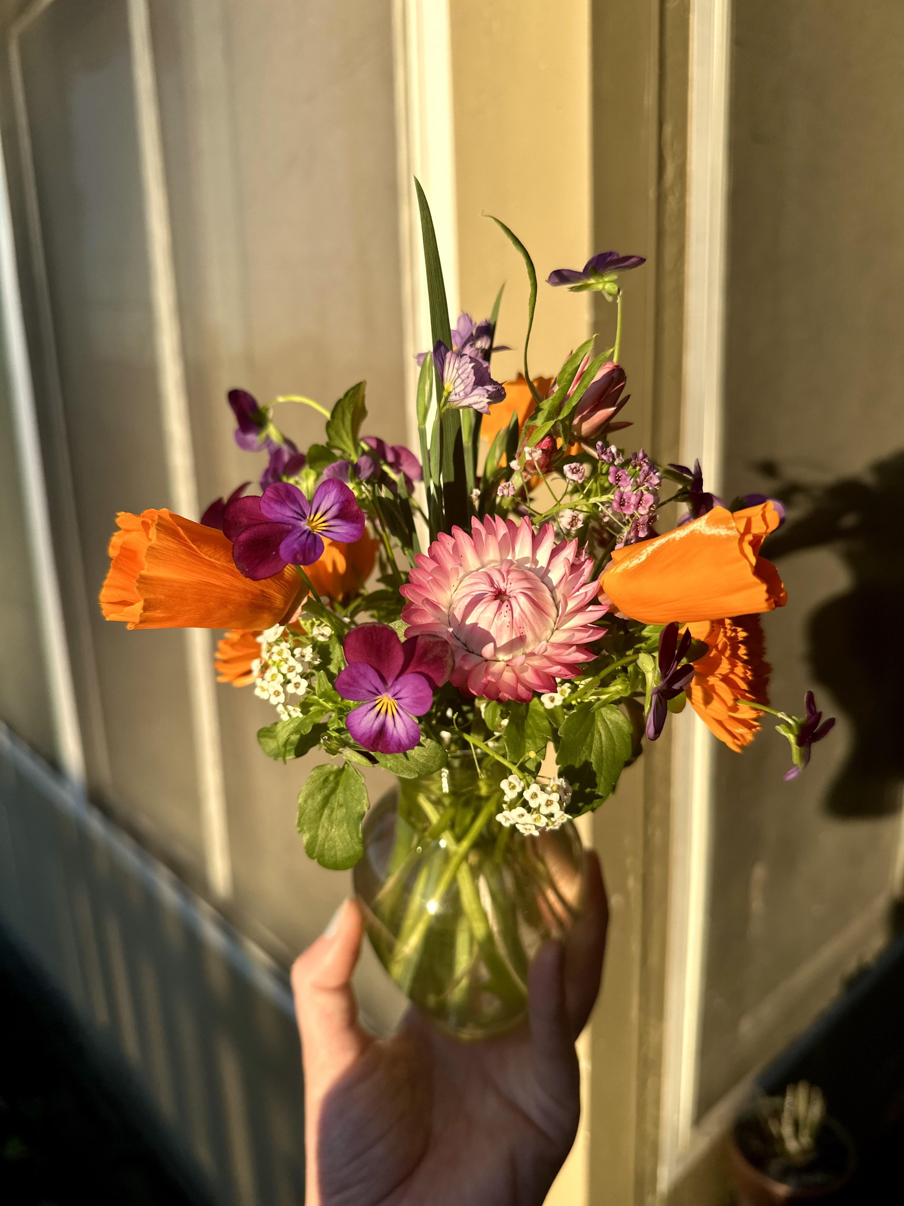 2026年最初の庭の花で作った花束