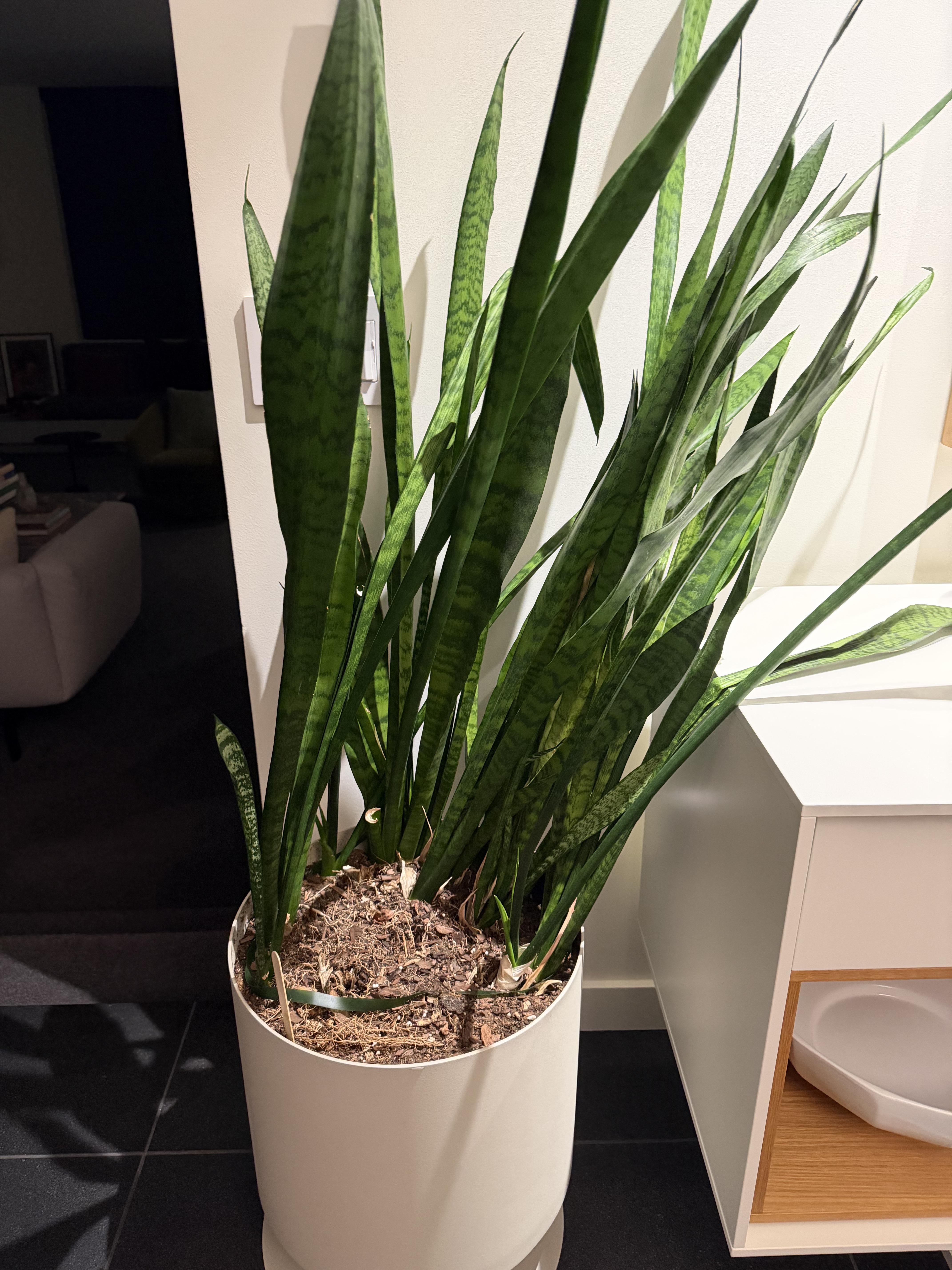 このスネークプラントは、かなり順調に育っていたのですが、片側に傾き、葉の一部が垂れ下がっていることに気づきました。痩せ方を改善するには植え替えが必要でしょうか?ありがとう!