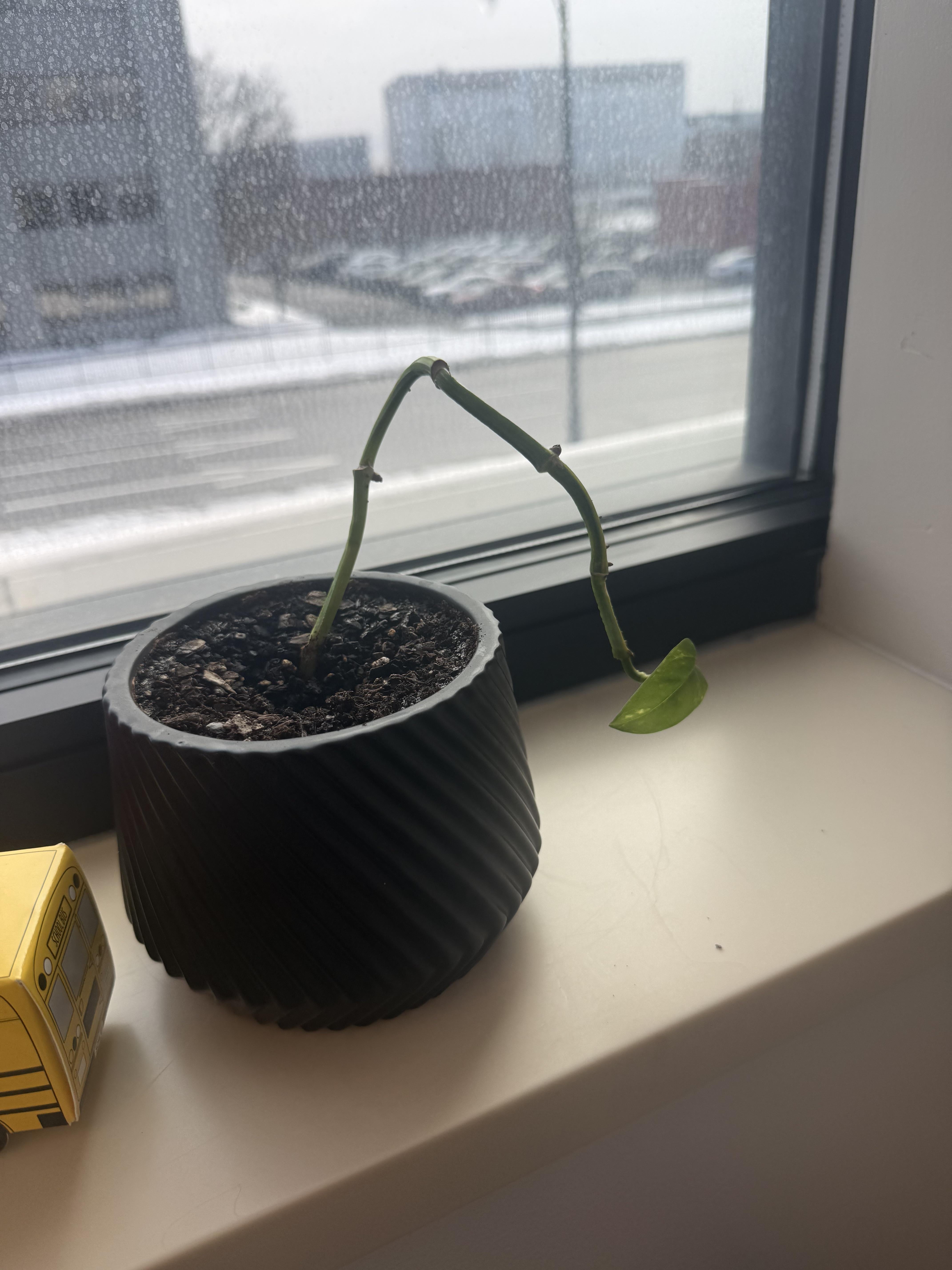 この植物をもらったのですが、気温が氷点下になったときに誤って一晩車の中に放置してしまいました。他の茎や葉はすべて枯れて落ちましたが、この葉は室内に戻してから成長し始めました。最終的には最初の植物からより多くの葉や茎が成長し続けるのでしょうか、それともそれを切り取って植え直す必要があるのでしょうか?