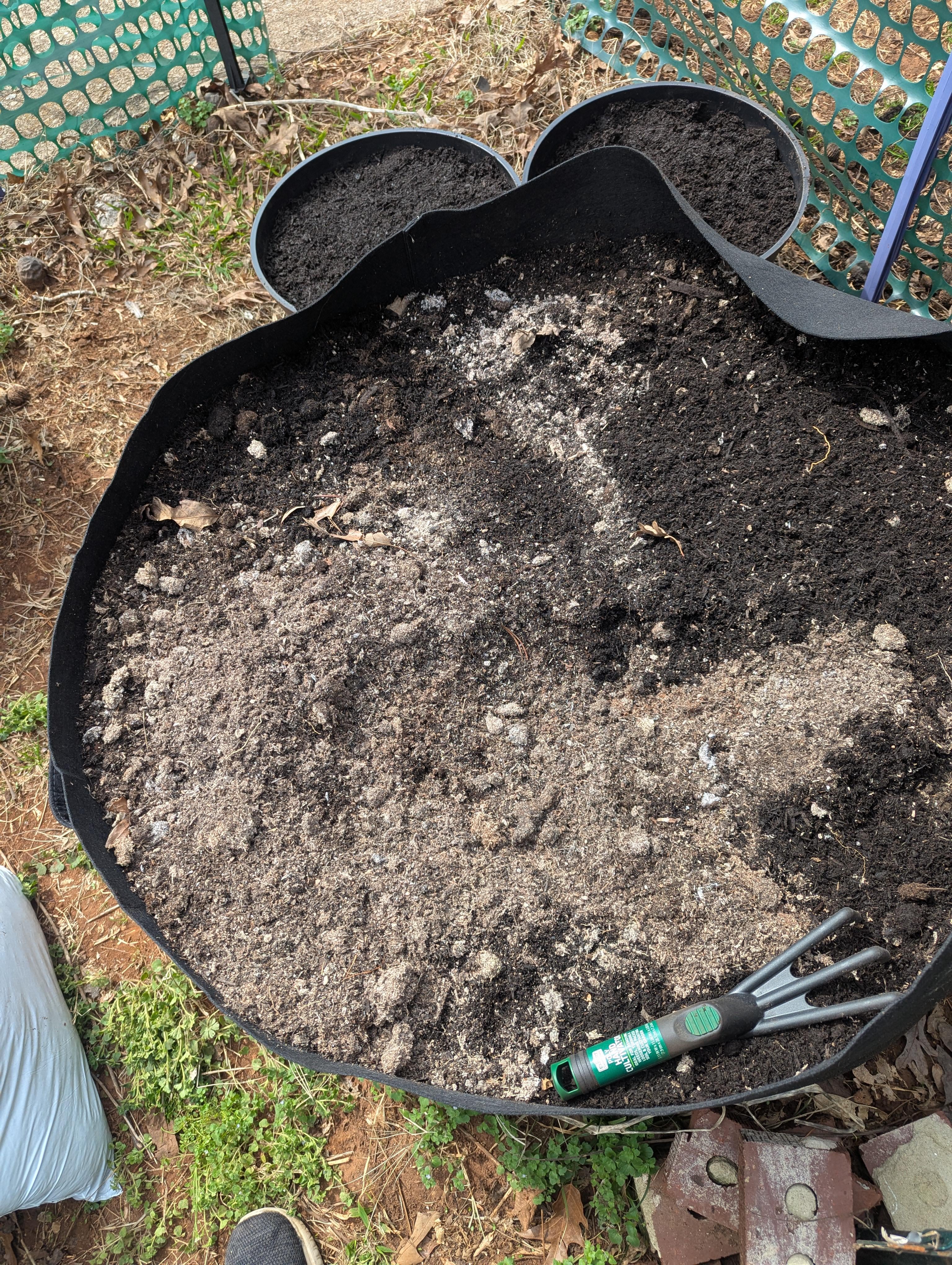各コンテナに堆肥を追加するために庭を歩いていたとき、コンテナの 1 つで、表面直下の土壌全体が白い色合いになっていることに気づきました。他のコンテナにはこれがありません。昨年、すべてを一緒にするためにまったく同じ土壌混合物を使用しました。何が原因でこれが有害なのか知っている人はいますか?