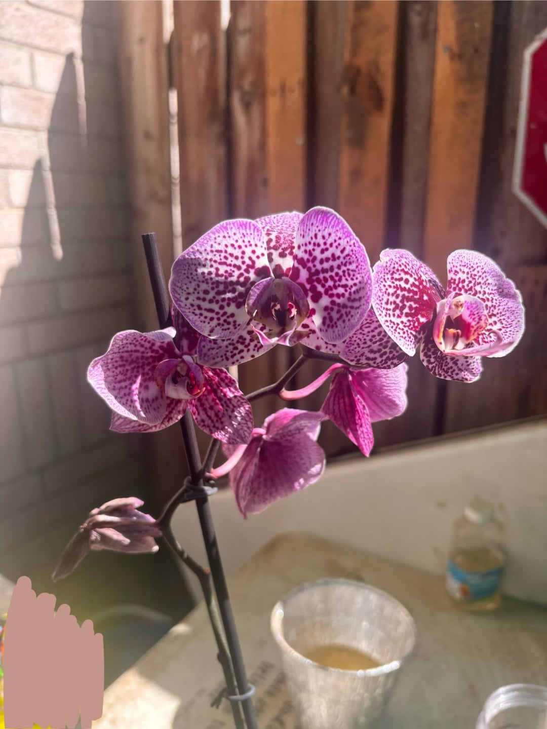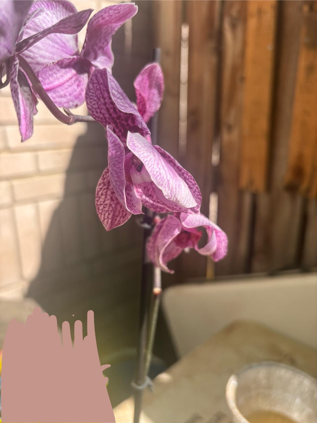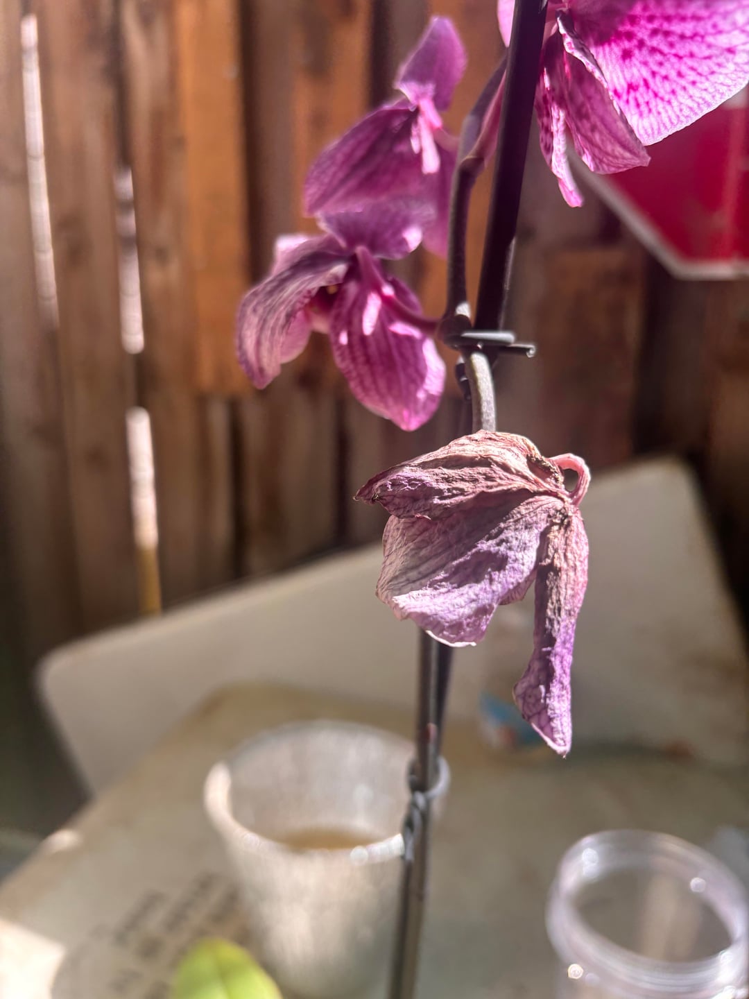 私はこの蘭をホームセンターで購入しましたが、約2年間で彼女は成長していました。でもその後、彼女を外に放っておいたら、思ったより暑くなってしまった(双極性障害、ああ、テキサスの天気)。彼女は茶色くなり始め、ゆっくりと垂れ始めました。最近彼女を植え替えて、それが私がミラクルグロウを使用した問題だったかどうかを確認しました "蘭用鉢植えミックス" しかし何も変わりませんでした。助けてください