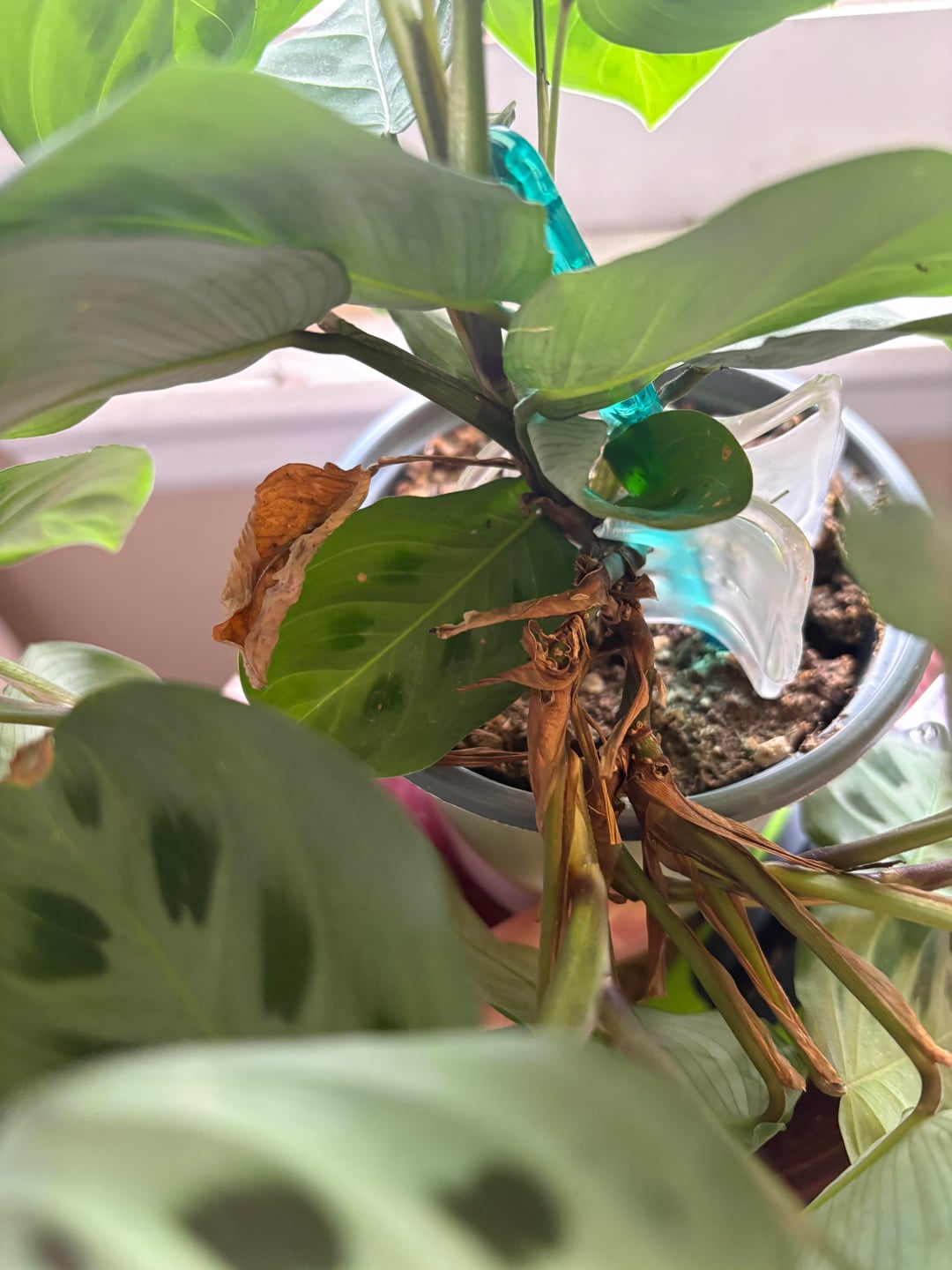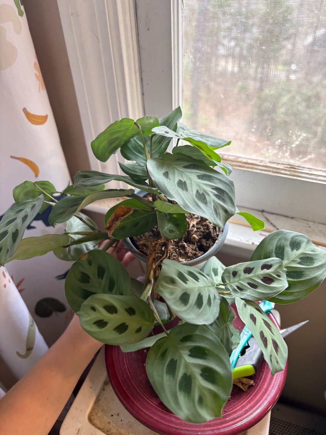 私の祈りの植物はここ数か月間元気に成長し、たくさんの新しい葉を広げてきましたが、今は傾いています。黄色い葉を数枚切り落としましたが、しなびた葉がいくつかありました。痩せた部分が植物に害を与えているかどうかはわかりません。夜になると、直立した葉は祈りますが、傾いた葉は折りたたもうともがきます。傾いた枝は切り落としたほうがいいでしょうか?ヒントをいただければ幸いです。