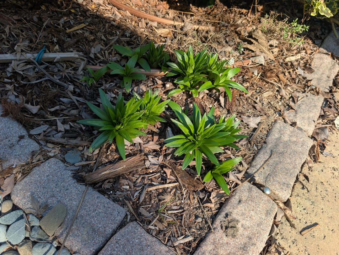 昨年ここにユリを植えましたが、今は小さな植物がいくつか咲いているのを見るのが楽しみです。中には非常に混雑して 3 つのクラスターになっているように見えるものもあります。間引いたほうがいいでしょうか?別の場所に植え直したほうがいいでしょうか?