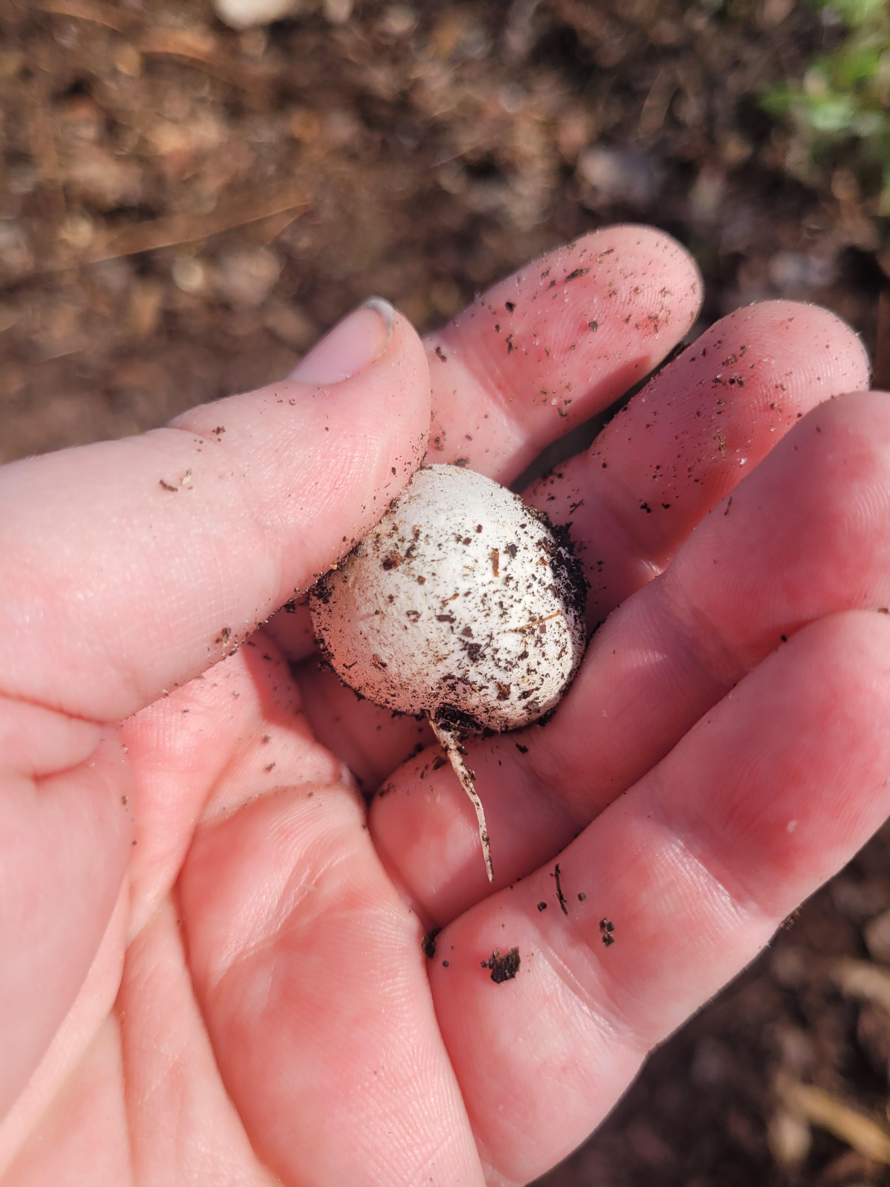 かき集め中に発見。最初根を見るまでは爬虫類の卵かと思いました
