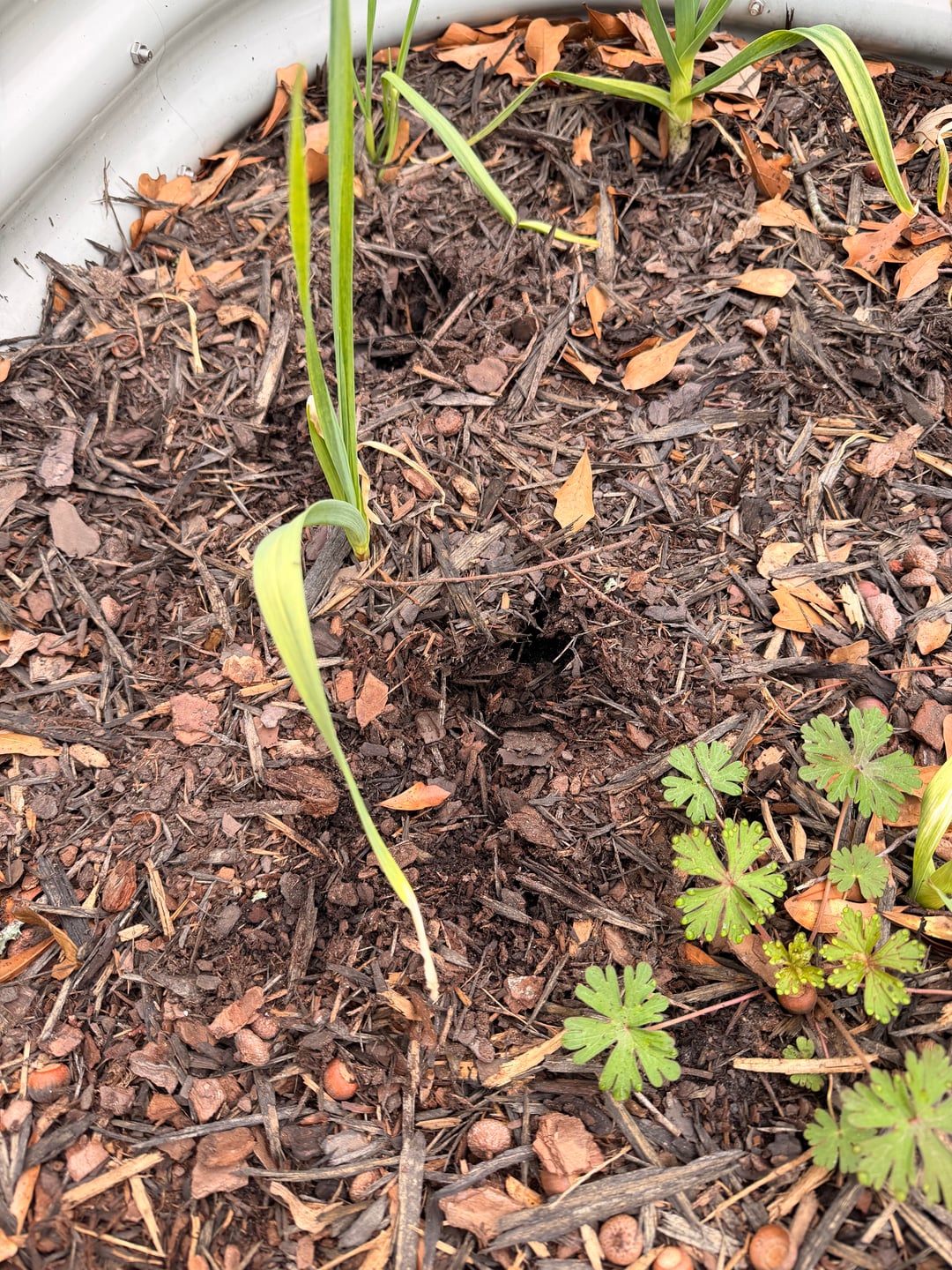 何かが庭のベッドに穴を掘っている