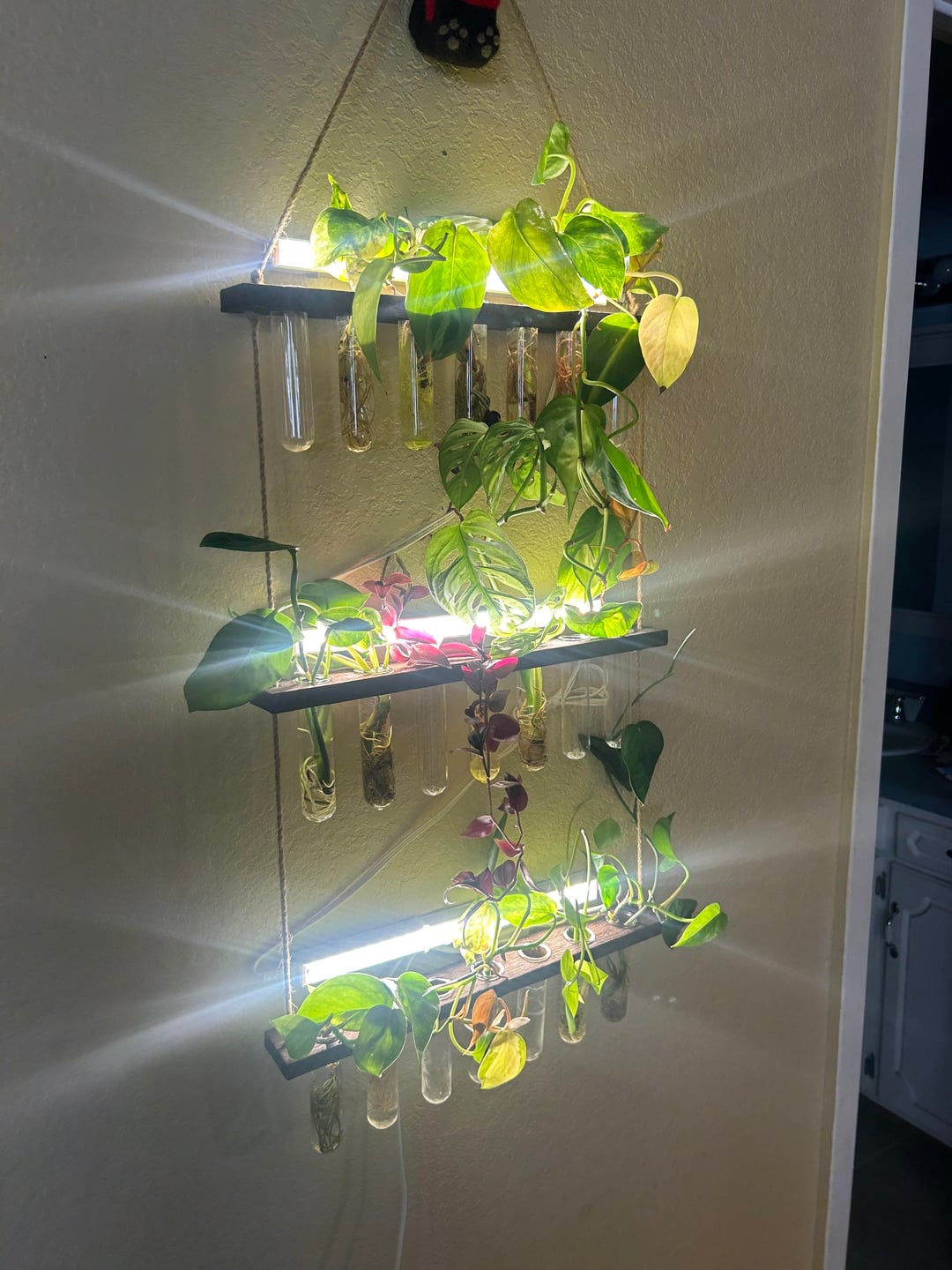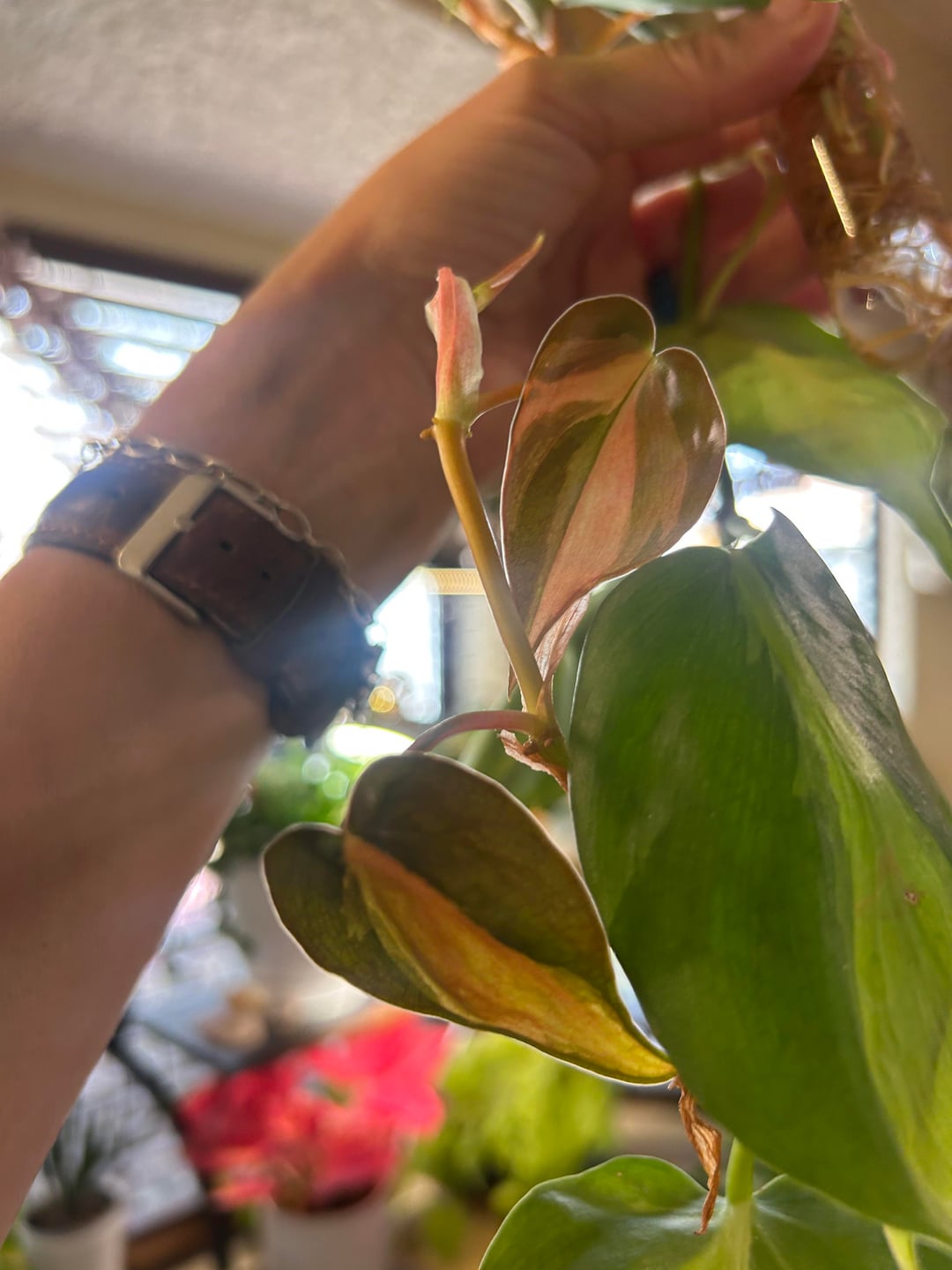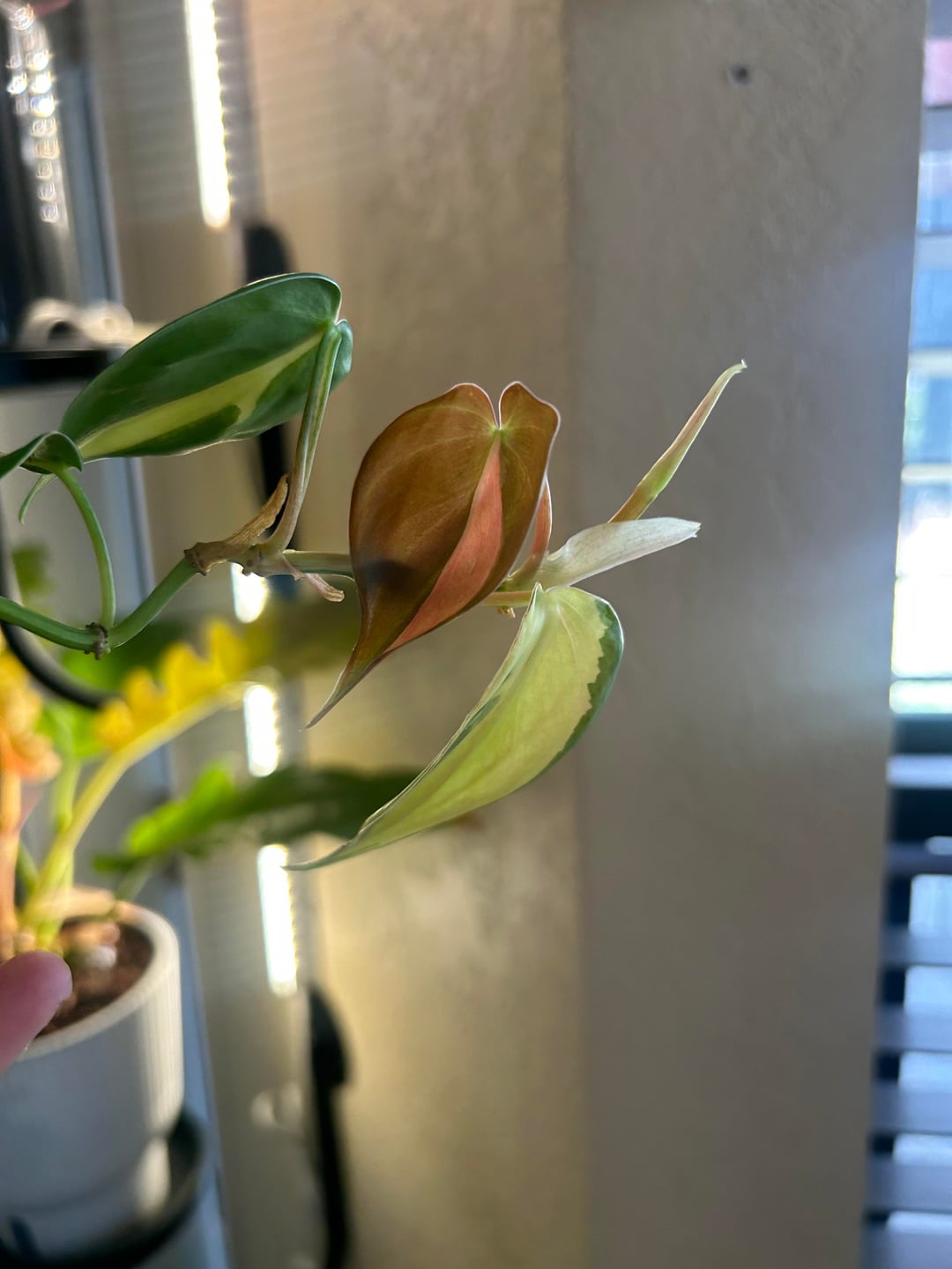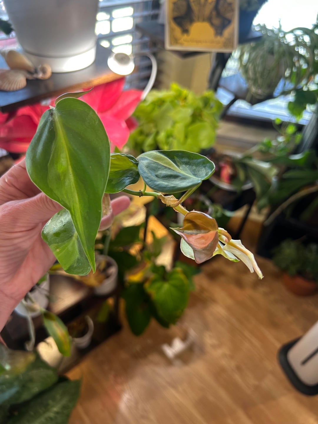 これらの切り抜きはプロップステーションにあります。はい、もう鉢植えにする必要はありませんが、私の小さな緑の壁を手放すのは難しいです。 😭 私の質問は、新しい葉についてです。グローライトを入れてから、新しい葉がピンク色になってきました。彼らはストレスを感じていますか? 最初の写真は、左側の元の葉がどのように見えるかを示しています。