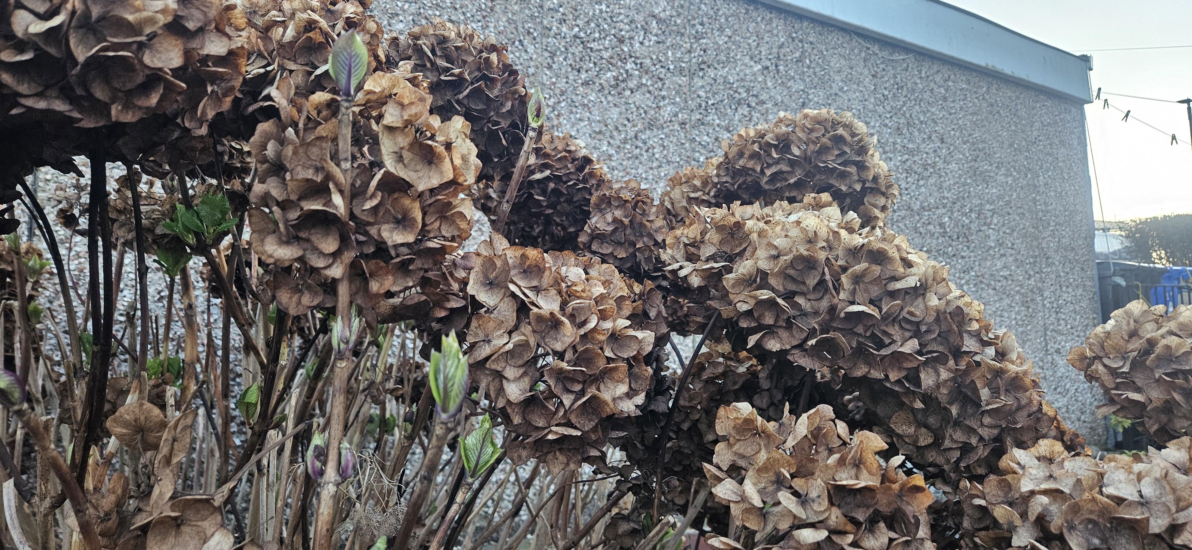 もう春が近づいているのに、これらの花は完全に枯れてしまいました。新しい花の芽吹きを見ることができます。枯れた花は切り取ったほうがいいでしょうか?誰かがそれが何の種類の花か知っているなら、plz lmk