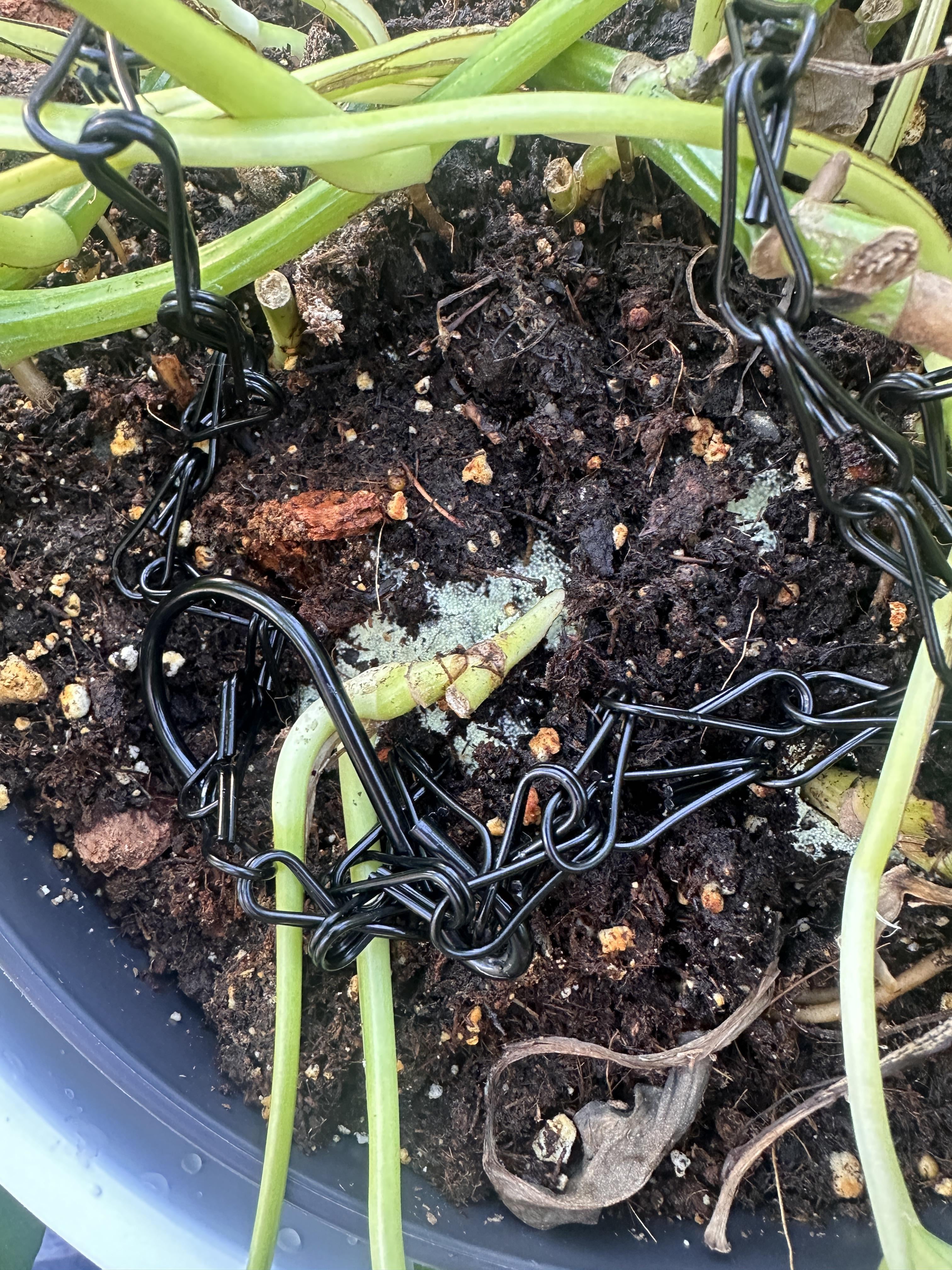 今朝、水やりのためにこのハンギングバスケットを下ろしたところ、これに気づきました。これは何ですか、どうすればよいですか? 😫