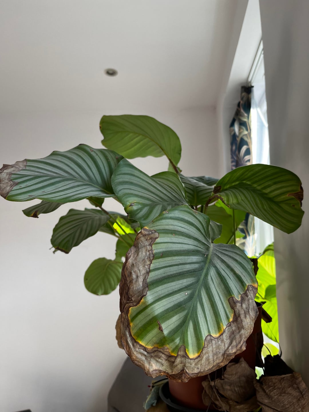 こんにちは、初めてここに来ます。この植物は私の誇りでした。以前は青々と茂っていて、葉の端に茶色の斑点のある葉もいくつかありましたが、それほど多くはありませんでした。